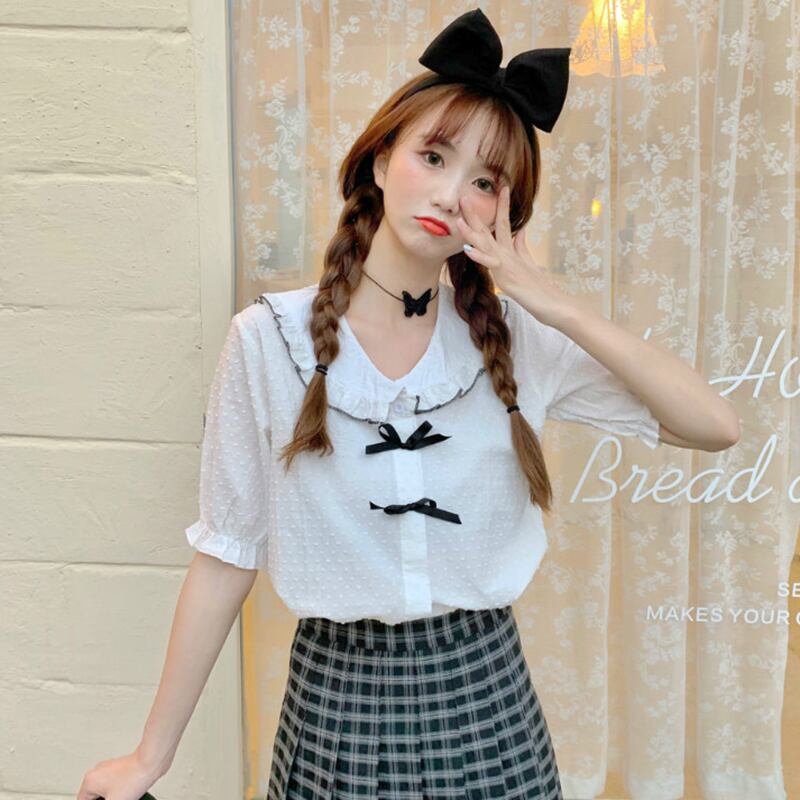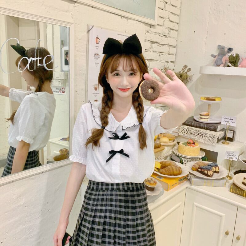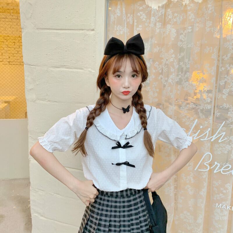 ✞ きれいめ☆ネイビーシャツブラウスリボン大人女子☆ スウィート ガーリー ✞ゴスロリ SM ミリ 甘ロリ クラロリ 和ロリ エレガント 黒ロリ 姫ロリ 華ロリ BB-BB6740834