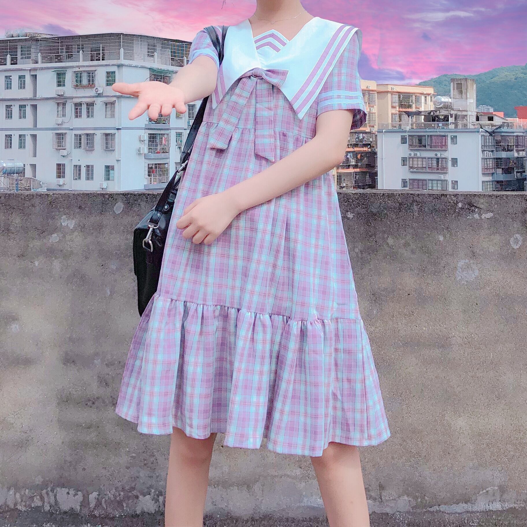 ✞ サマーきれいめ☆ネイビーリボンチェック柄 スウィート 夏物 ✞ゴスロリ SM ミリ 甘ロリ クラロリ 和ロリ エレガント 黒ロリ 姫ロリ 華ロリ BB-BB7981917