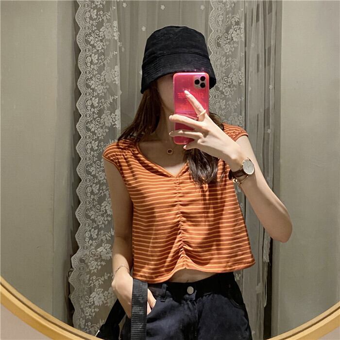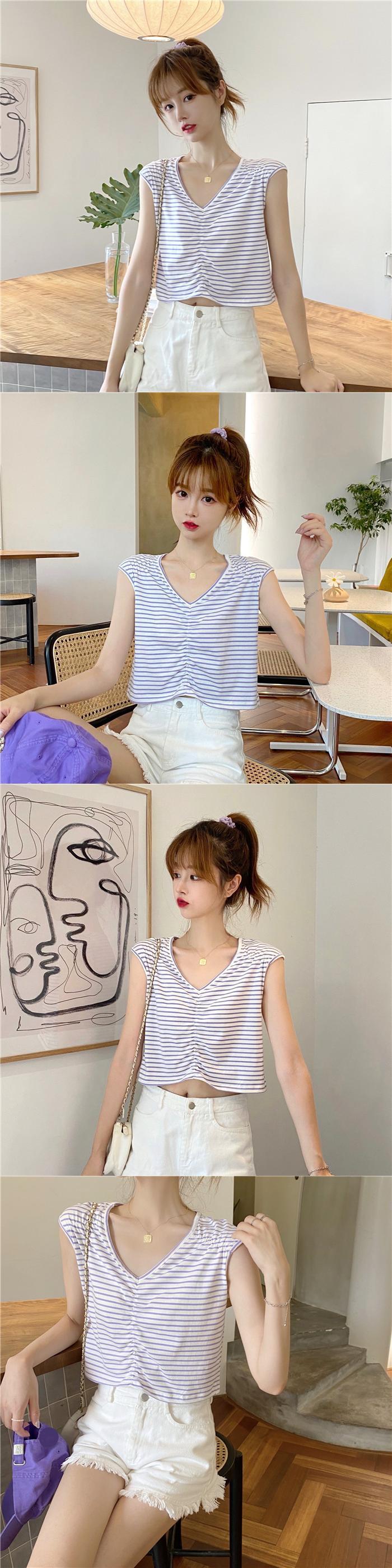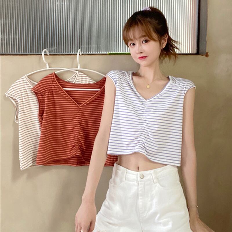 ✞ きれいめ☆Vネックトップス スタンダードストレッチプリーツショートシャツブラウス レトロ エラスティック 伸縮 スウィート ストライプ ✞ゴスロリ SM ミリ 甘ロリ クラロリ 和ロリ エレガント 黒ロリ 姫ロリ 華ロリ BB-BB7686142
