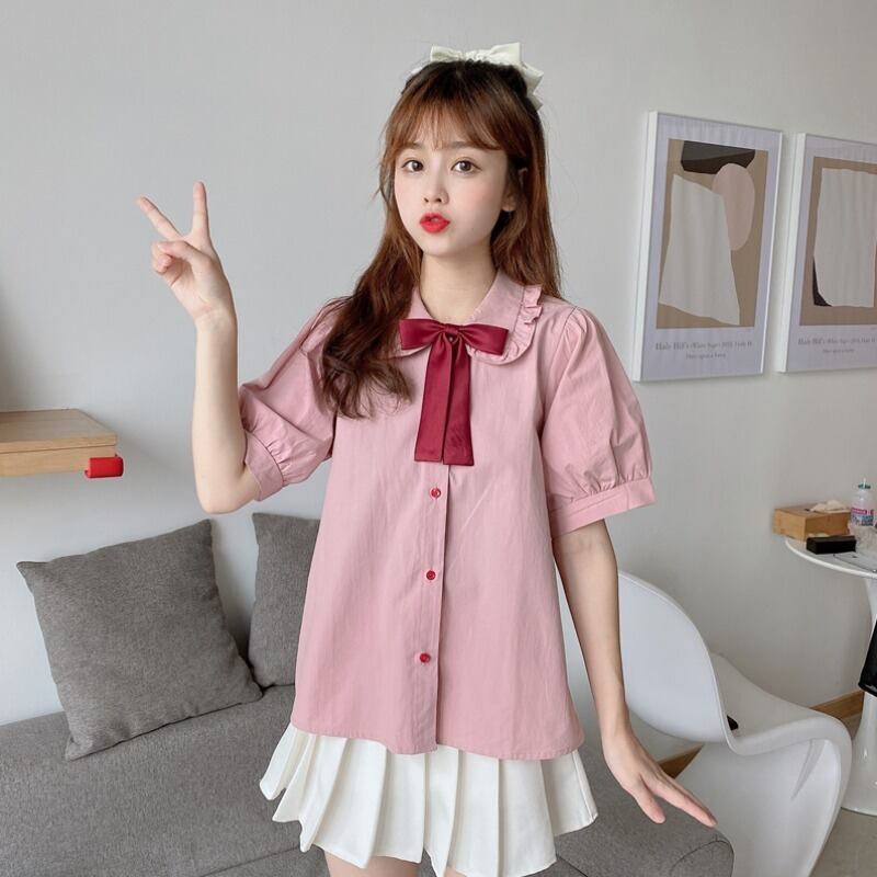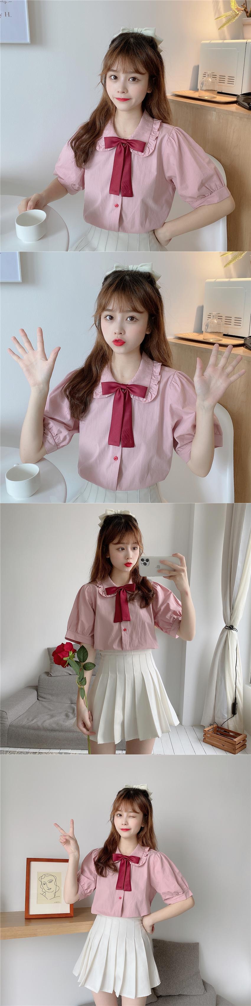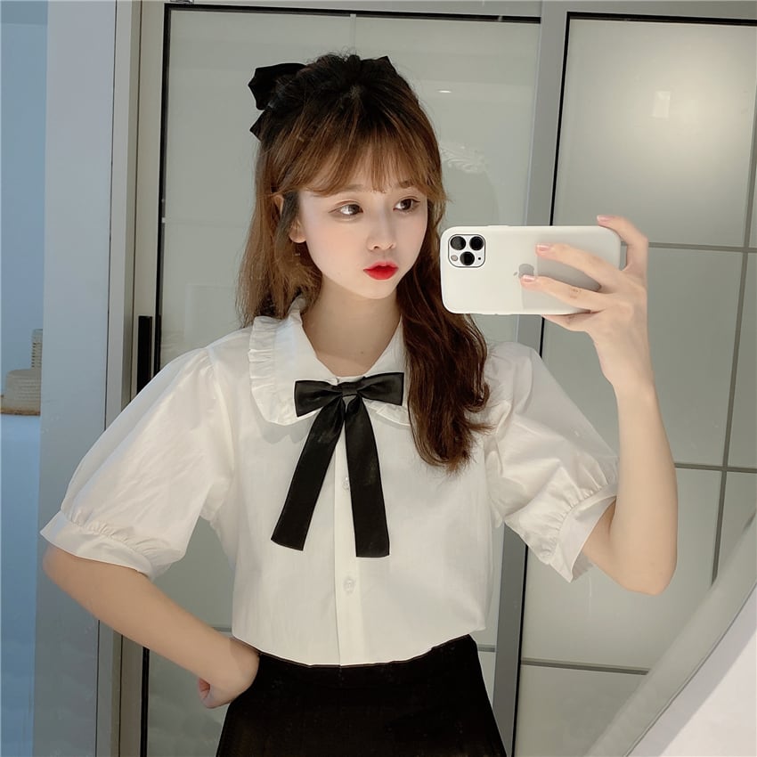 ✞ きれいめ☆シャツブラウスリボン♥カワイイ♥スリーブトップス スウィート ✞ゴスロリ SM ミリ 甘ロリ クラロリ 和ロリ エレガント 黒ロリ 姫ロリ 華ロリ BB-BB6117229