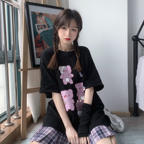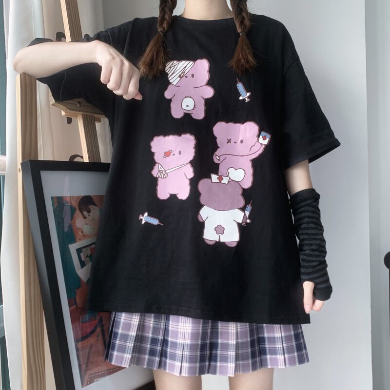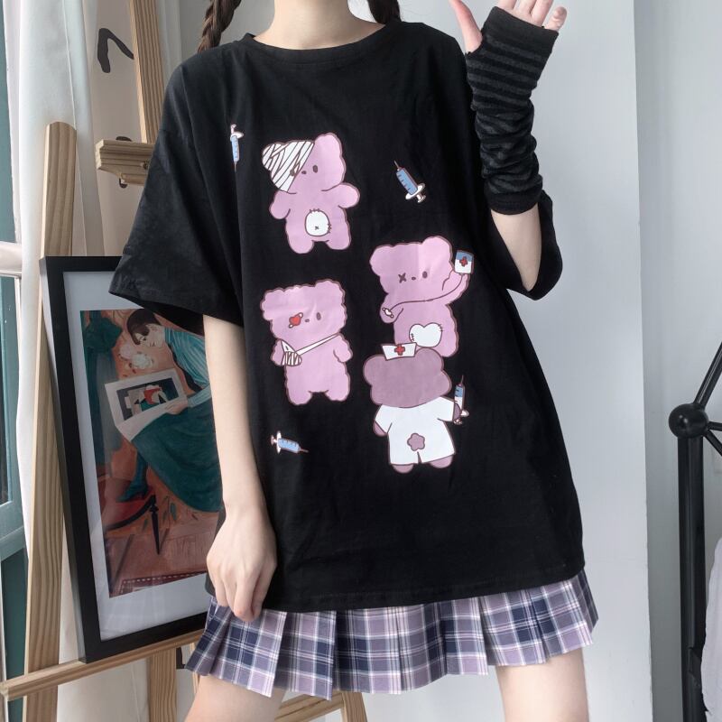 ✞ スタンダードダークブラックプリント柄Tシャツ レトロ ✞ゴスロリ SM ミリ 甘ロリ クラロリ 和ロリ エレガント 黒ロリ 姫ロリ 華ロリ BB-BB3597276