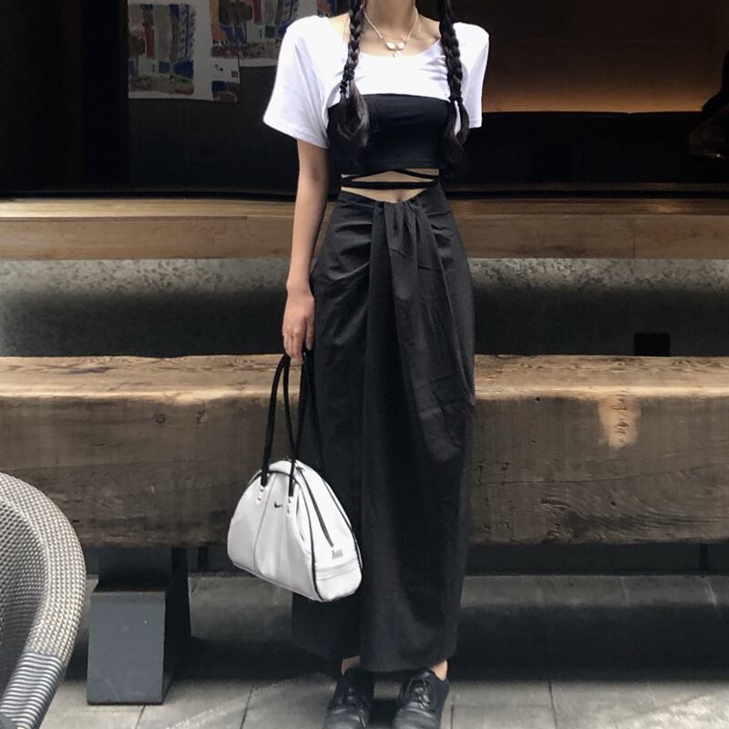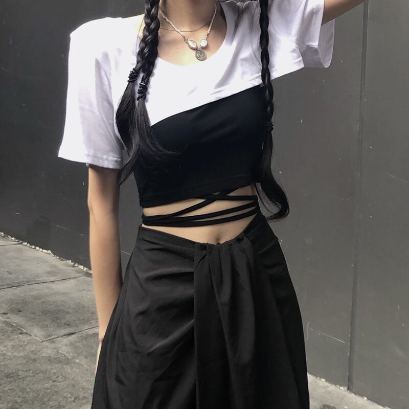 ✞ ダークブラックショートTシャツ トップス ストレッチウエストすっきり☆着痩せスカート エラスティック 伸縮 ✞ゴスロリ SM ミリ 甘ロリ クラロリ 和ロリ エレガント 黒ロリ 姫ロリ 華ロリ BB-BB5960387
