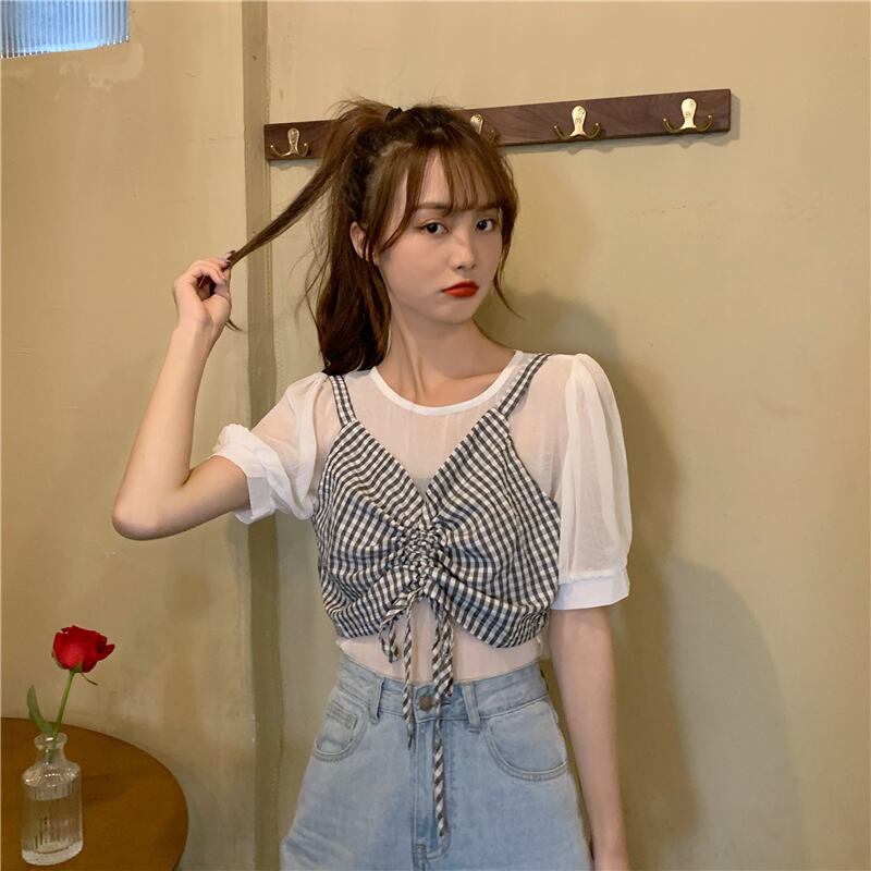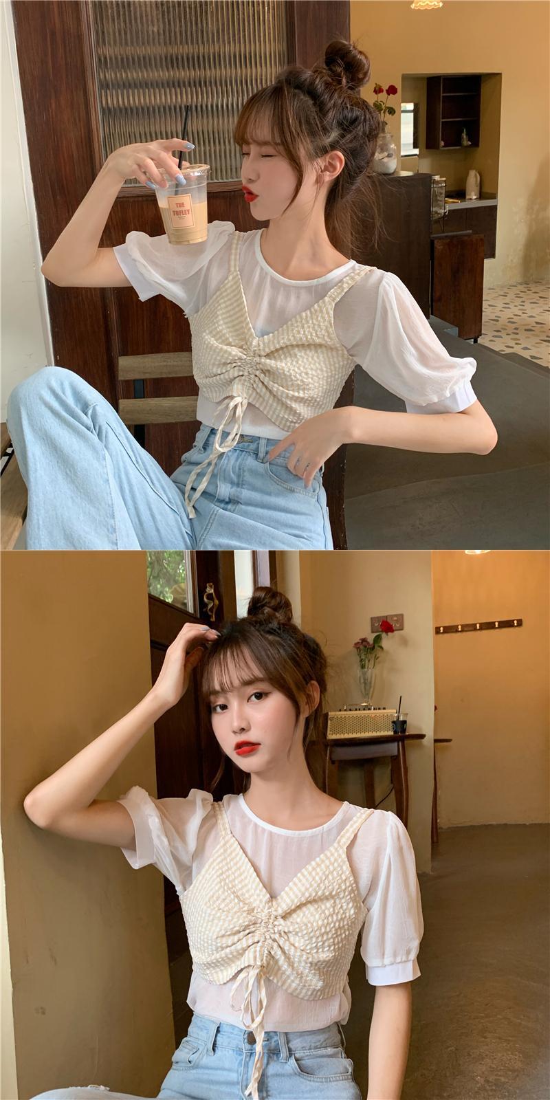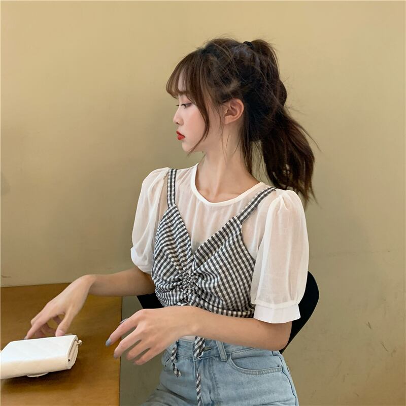 ✞ スリーブソリッド カラーシャツブラウスVネックギャザーチェック柄トップス ソリッドカラー ✞ゴスロリ SM ミリ 甘ロリ クラロリ 和ロリ エレガント 黒ロリ 姫ロリ 華ロリ BB-BB6079130