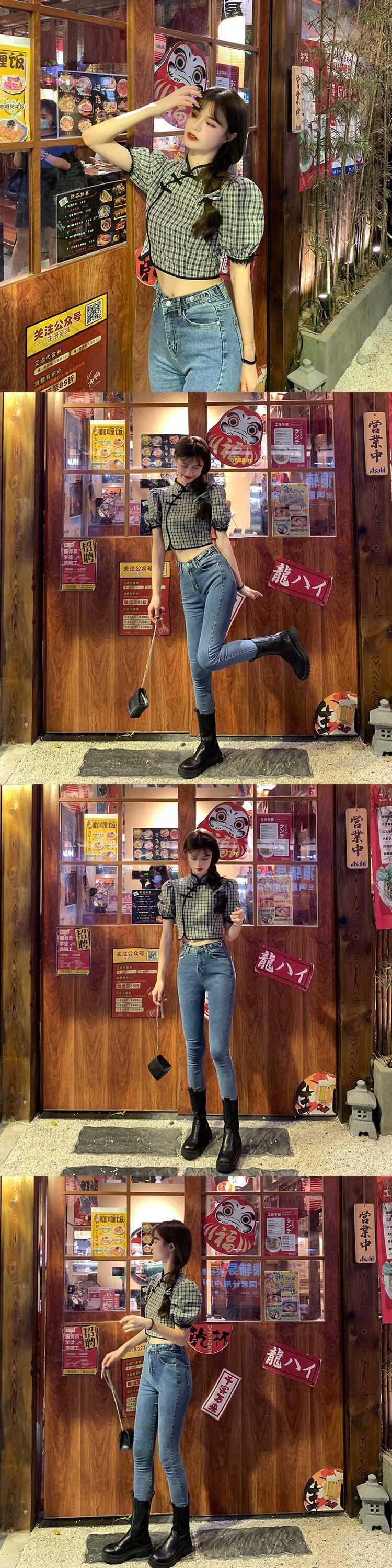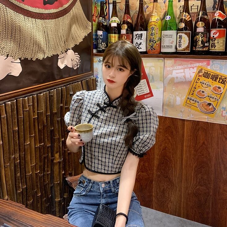 ✞ スタンダードシャツブラウスバックルスリムショートチェック柄スリーブトップス レトロ スウィート ✞ゴスロリ SM ミリ 甘ロリ クラロリ 和ロリ エレガント 黒ロリ 姫ロリ 華ロリ BB-BB1096985