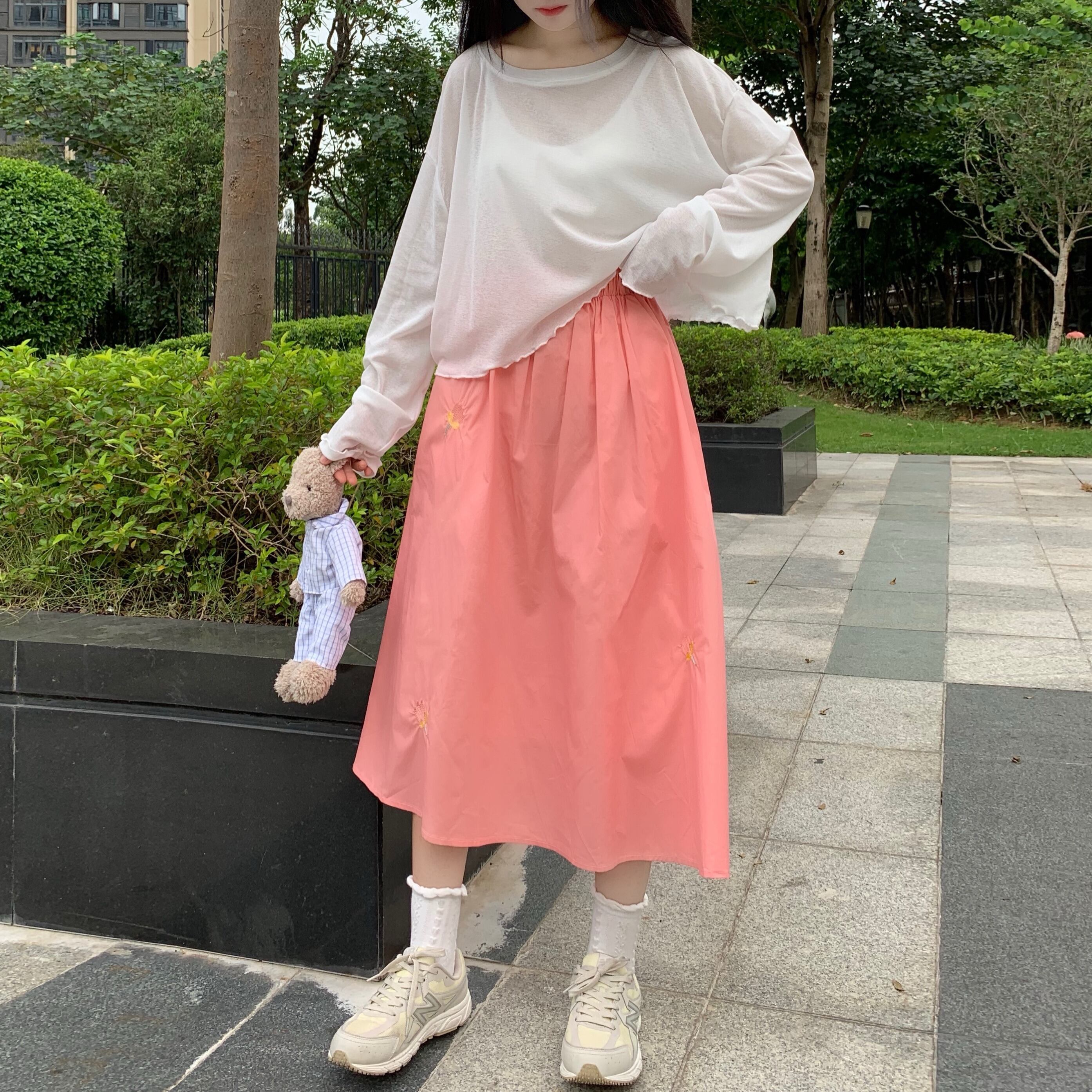 種類 サイズ:ワンサイズ, 色:半袖トップ サイズ:ワンサイズ, 色:長袖トップ サイズ:ワンサイズ, 色:ピンクエンブロイドスカートワンピース サイズ:ワンサイズ, 色:黒刺繍入りスカート