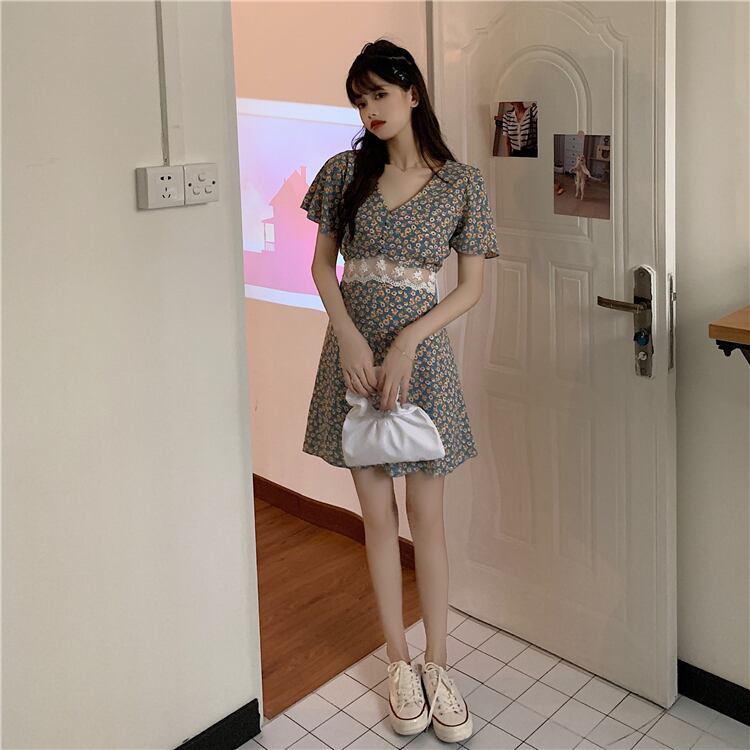 ✞ スタンダードきれいめ☆花柄Vネックレースウエストすっきり☆着痩せAライン レトロ ✞ゴスロリ SM ミリ 甘ロリ クラロリ 和ロリ エレガント 黒ロリ 姫ロリ 華ロリ BB-BB5557544
