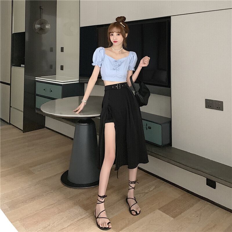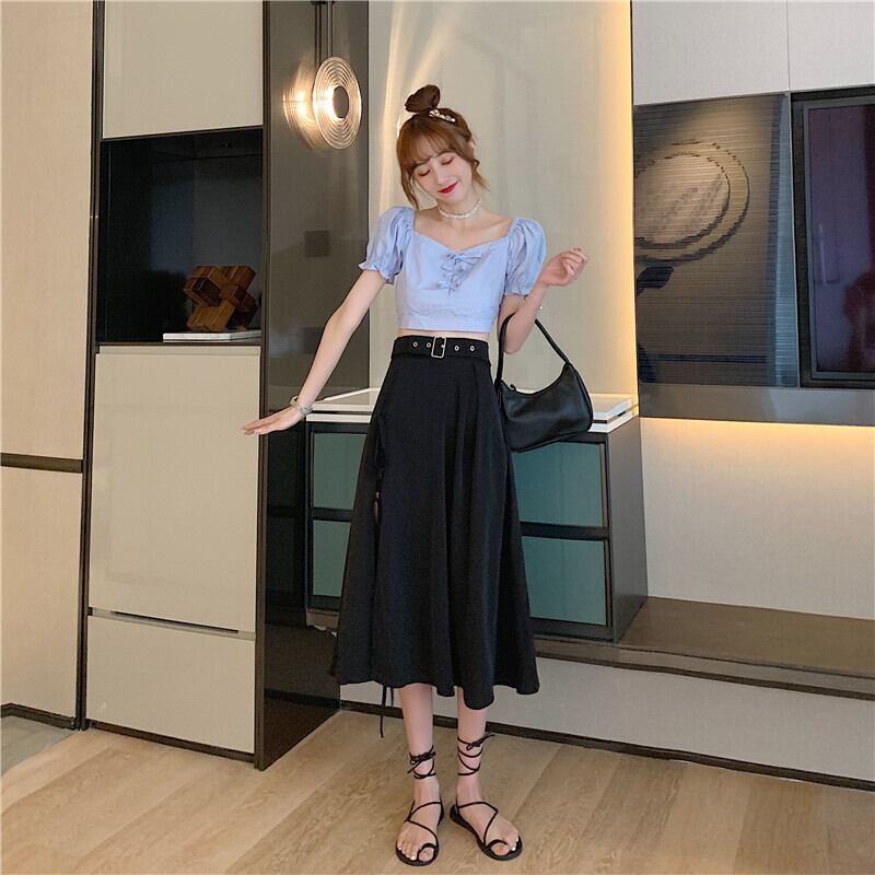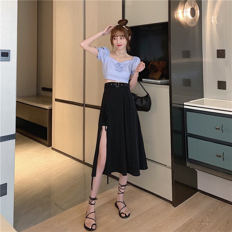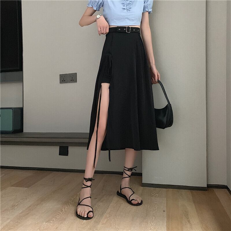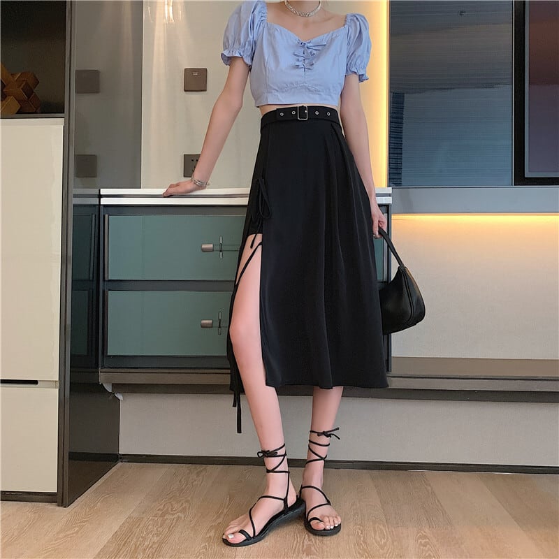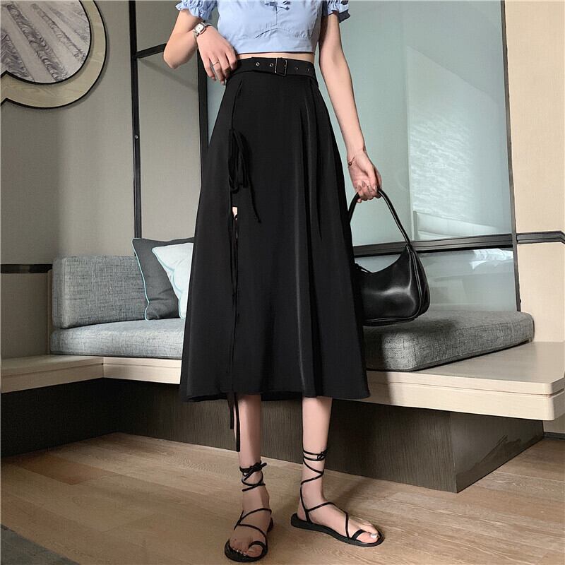 ✞ ブラックドレープスカート スリット♥カワイイ♥Aライン ✞ゴスロリ SM ミリ 甘ロリ クラロリ 和ロリ エレガント 黒ロリ 姫ロリ 華ロリ BB-BB5870610
