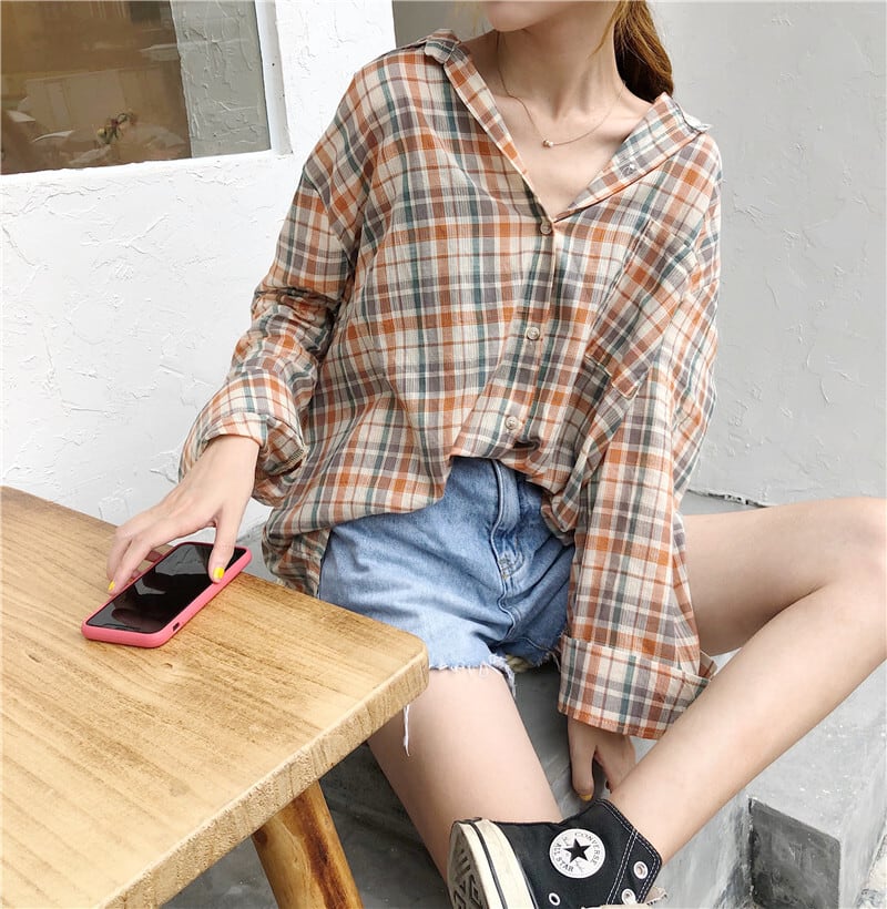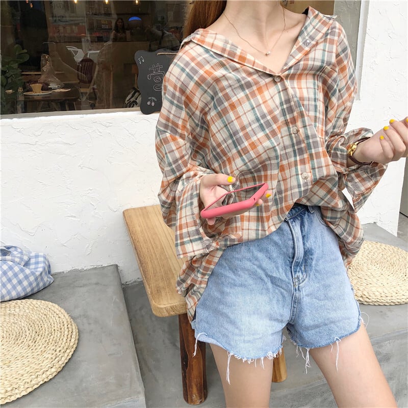 ✞ チェック柄シャツブラウスカーディガンスタンダードきれいめ☆♥カワイイ♥トップス ロング レトロ ✞ゴスロリ SM ミリ 甘ロリ クラロリ 和ロリ エレガント 黒ロリ 姫ロリ 華ロリ BB-BB5106709