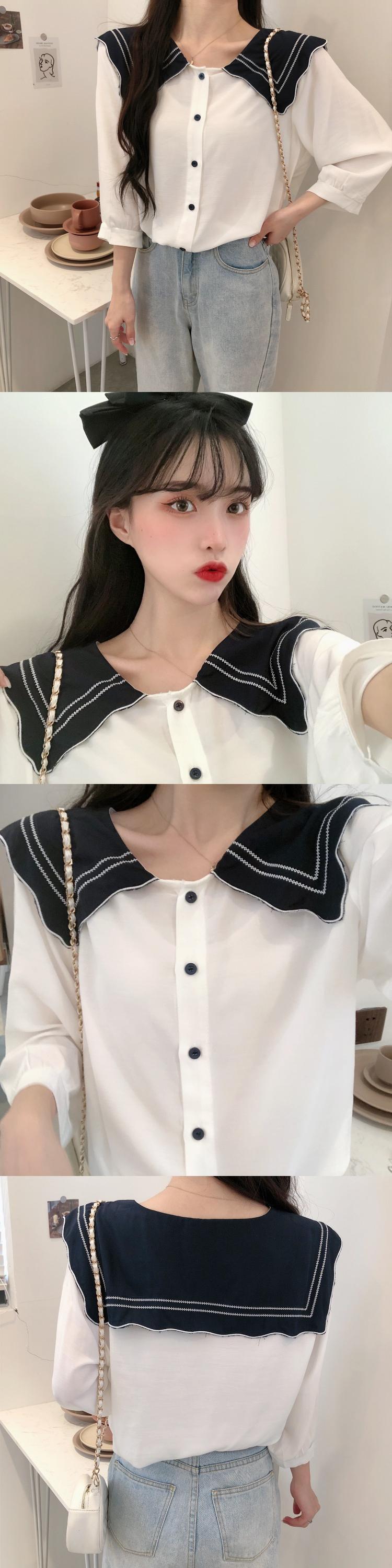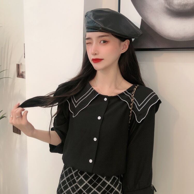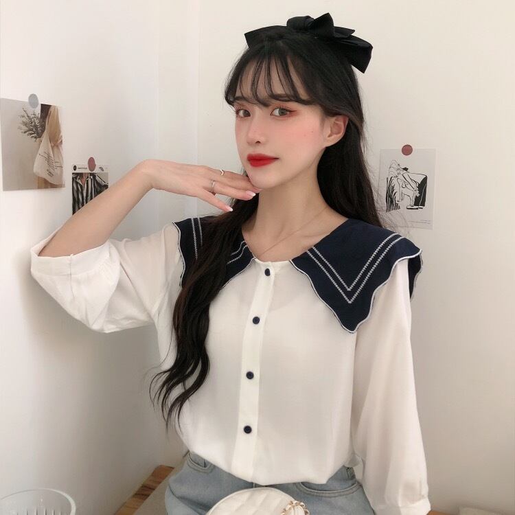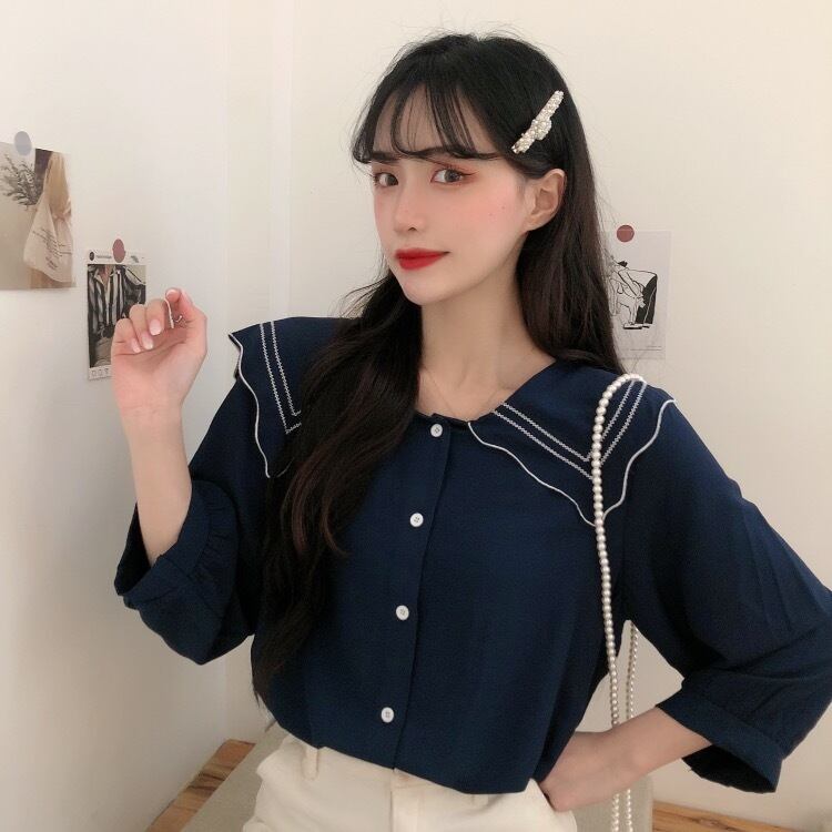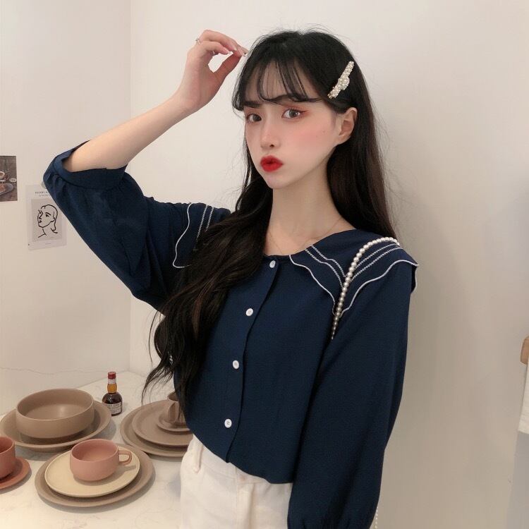 ✞ シャツブラウスきれいめ☆ネイビーカラー スウィート ✞ゴスロリ SM ミリ 甘ロリ クラロリ 和ロリ エレガント 黒ロリ 姫ロリ 華ロリ BB-BB5774966