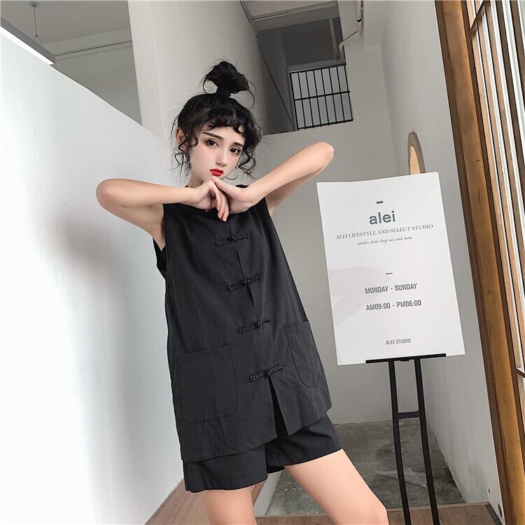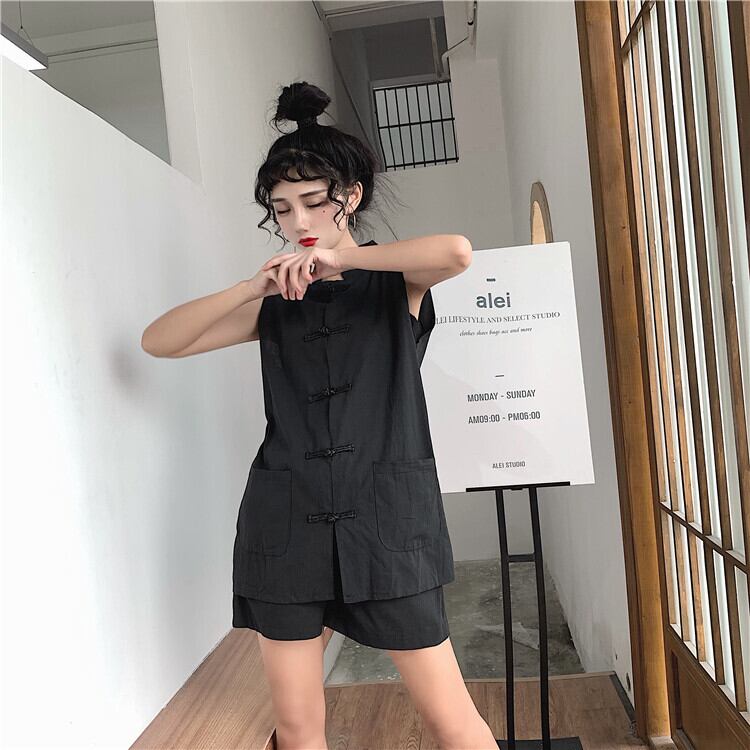 ✞ スタンダードきれいめ☆バックルノースリーブトップス ワイドレッグショートパンツ レトロ ✞ゴスロリ SM ミリ 甘ロリ クラロリ 和ロリ エレガント 黒ロリ 姫ロリ 華ロリ BB-BB4434577