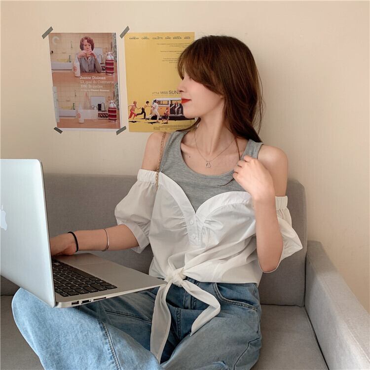 ✞ ラウンドネックストラップレス♥カワイイ♥スリーブシャツブラウストップス ステッチ ✞ゴスロリ SM ミリ 甘ロリ クラロリ 和ロリ エレガント 黒ロリ 姫ロリ 華ロリ BB-BB5712373