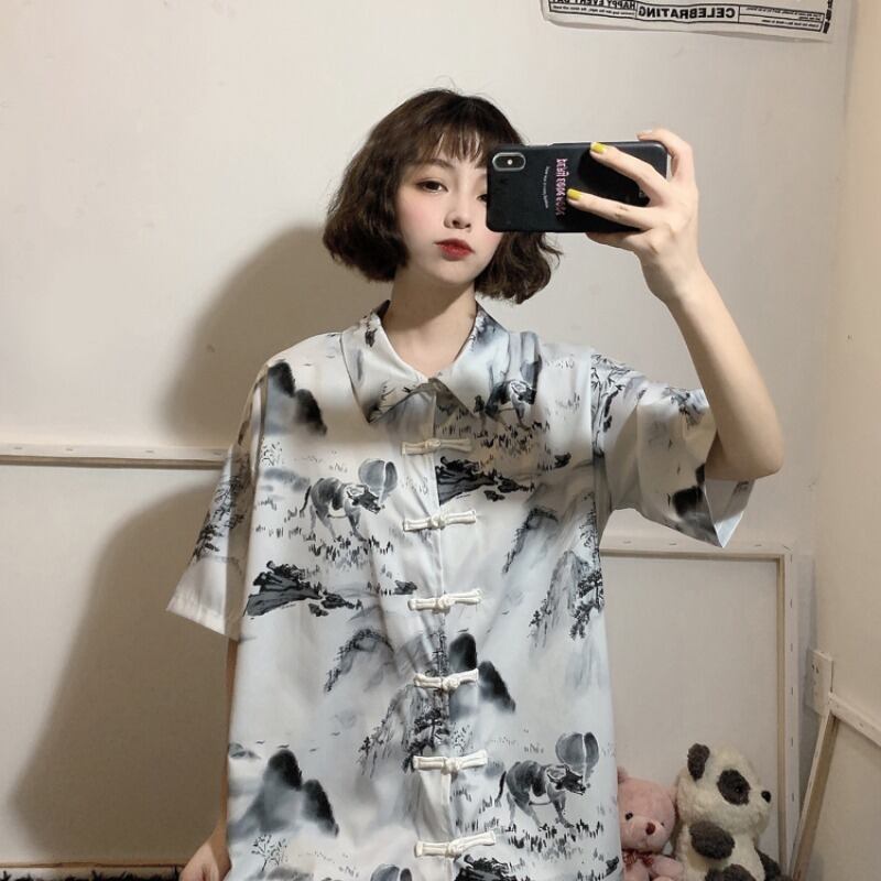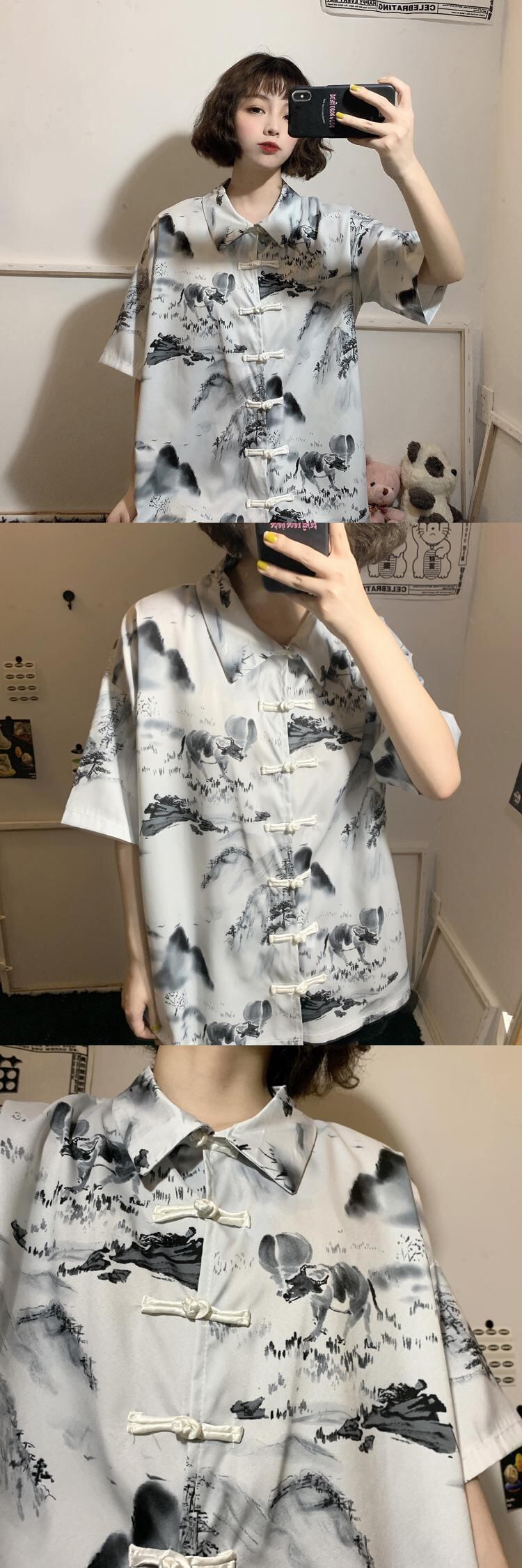 ✞ きれいめ☆スタンダードプリント♥カワイイ♥ショートバックル半袖スリーブシャツブラウストップス レトロ ✞ゴスロリ SM ミリ 甘ロリ クラロリ 和ロリ エレガント 黒ロリ 姫ロリ 華ロリ BB-BB8538374