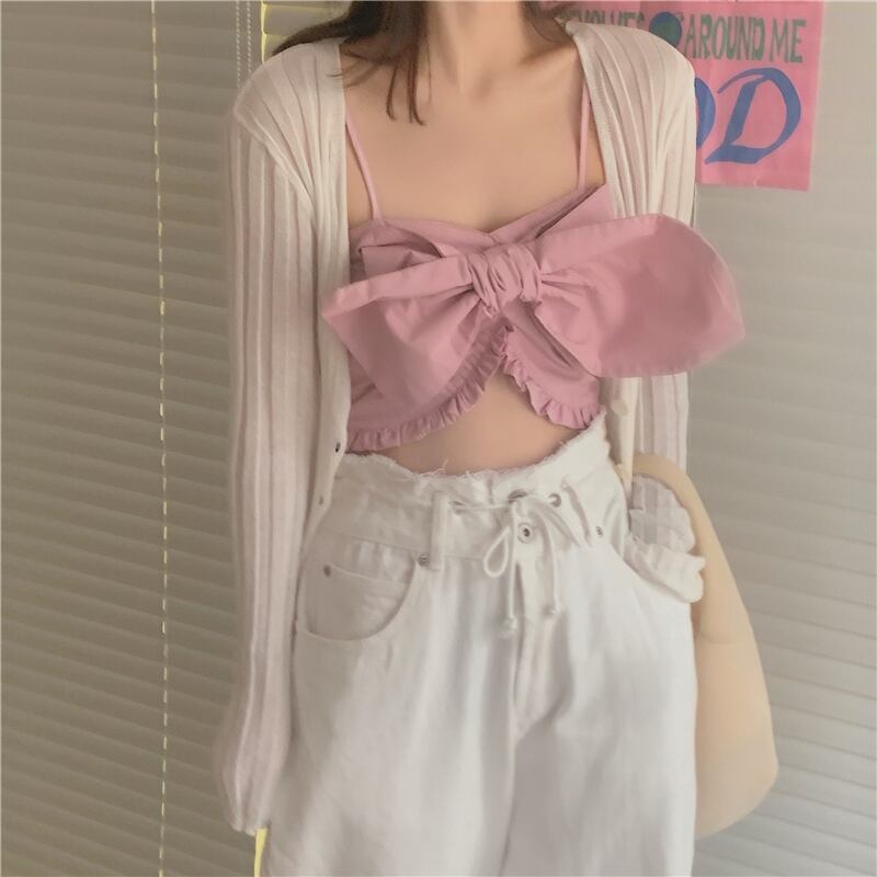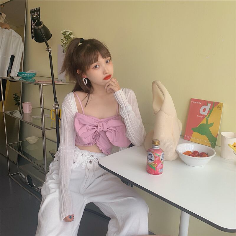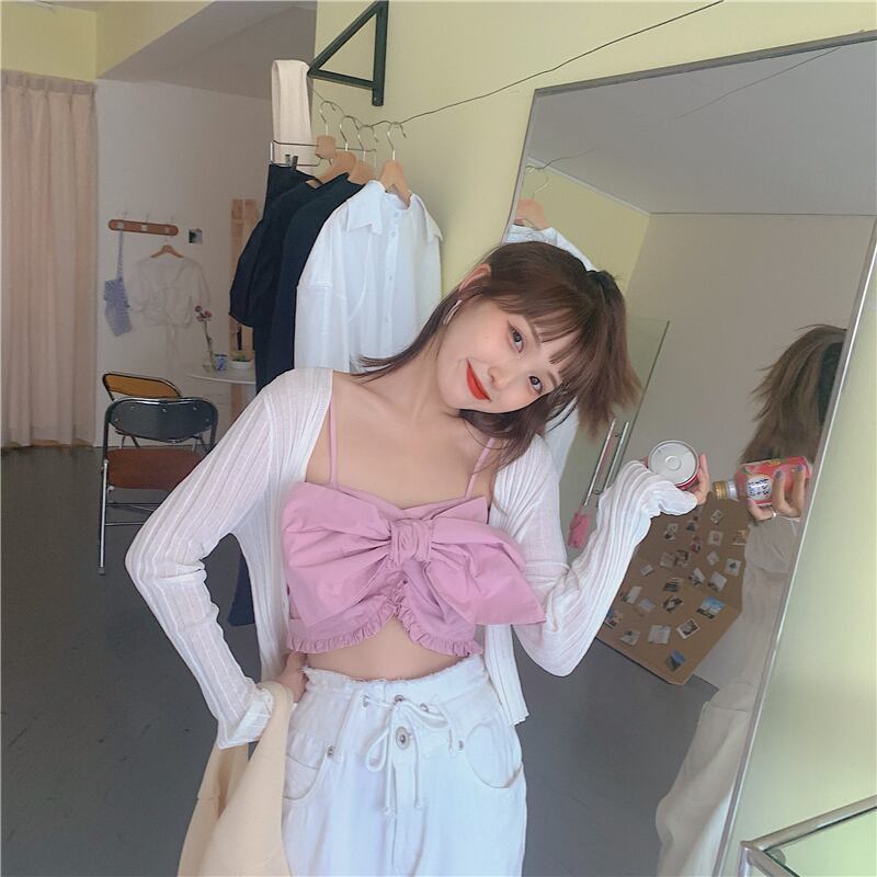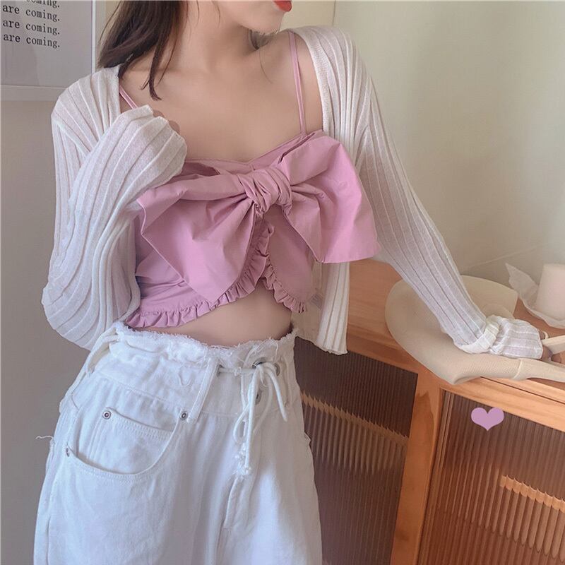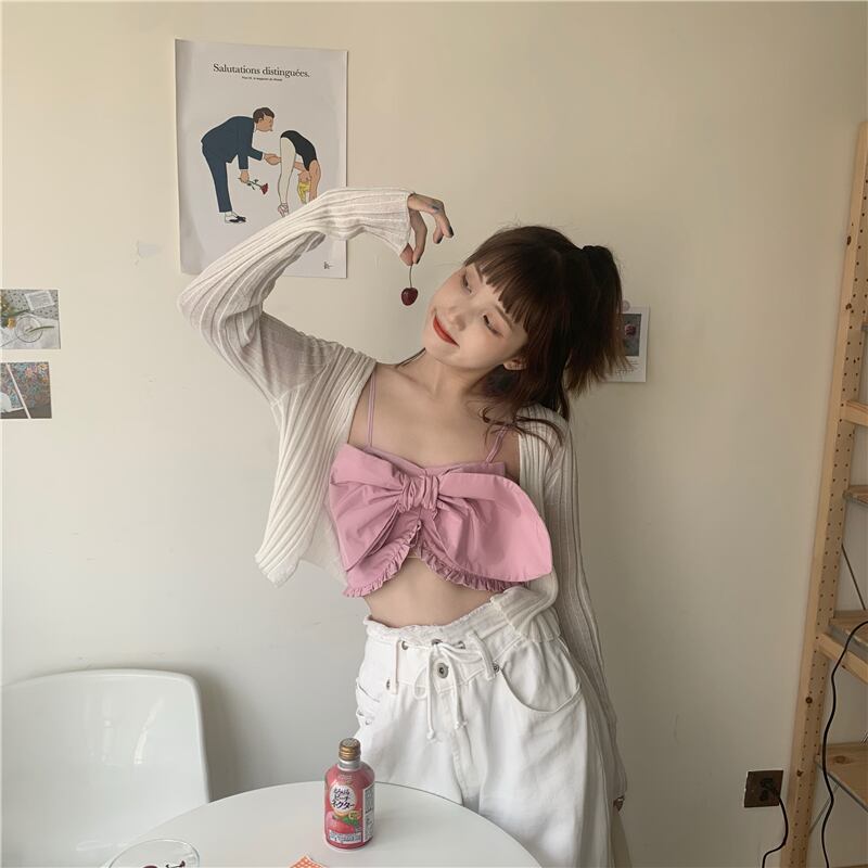 ✞ リボンショートキャミソール長袖スリーブ♥カワイイ♥ニットカーディガン ロング スウィート ガーリー ✞ゴスロリ SM ミリ 甘ロリ クラロリ 和ロリ エレガント 黒ロリ 姫ロリ 華ロリ BB-BB9313187