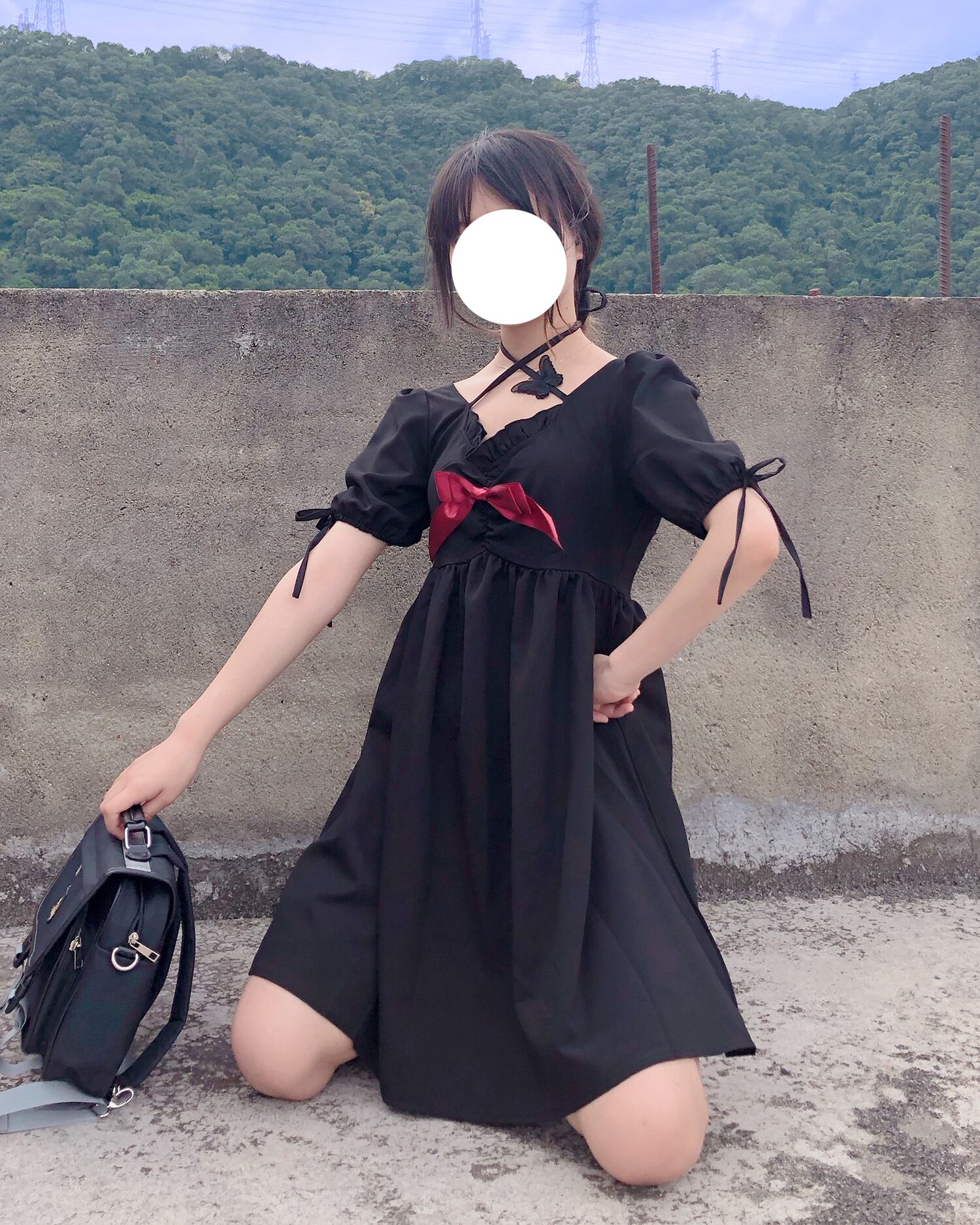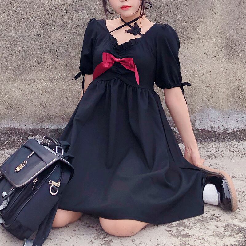 ✞ 黒ダークButterfly蝶りぼんクロスストラップワンピースドレスOP レトロ フラワーデザイン スクウェア ✞ゴスロリ SM ミリ 甘ロリ クラロリ 和ロリ エレガント 黒ロリ 姫ロリ 華ロリ BB-BB2464089