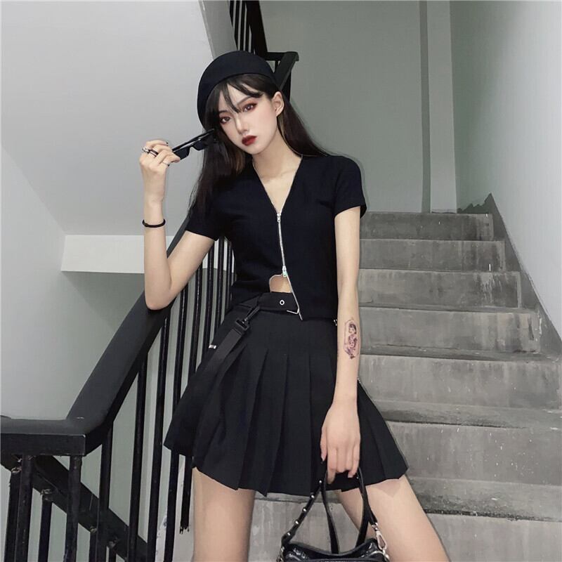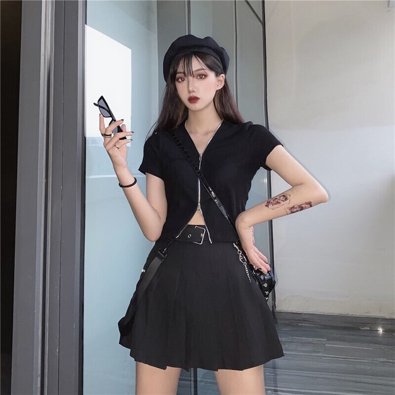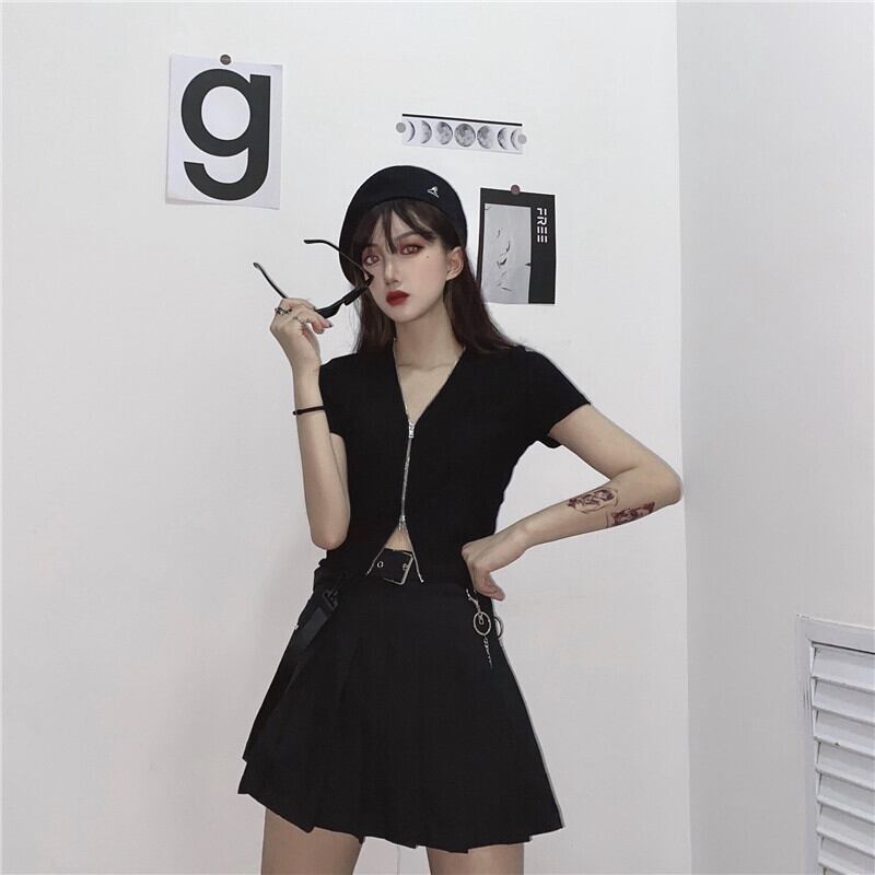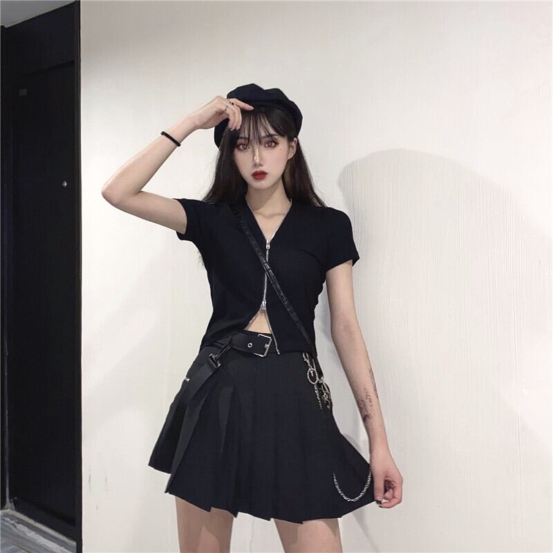 ✞ 黒ダークVネックジッパーショートカーディガン or プリーツスカート(チェーンベルト) スリム コート✞ゴスロリ SM ミリ 甘ロリ クラロリ 和ロリ エレガント 黒ロリ 姫ロリ 華ロリ BB-BB3345439
