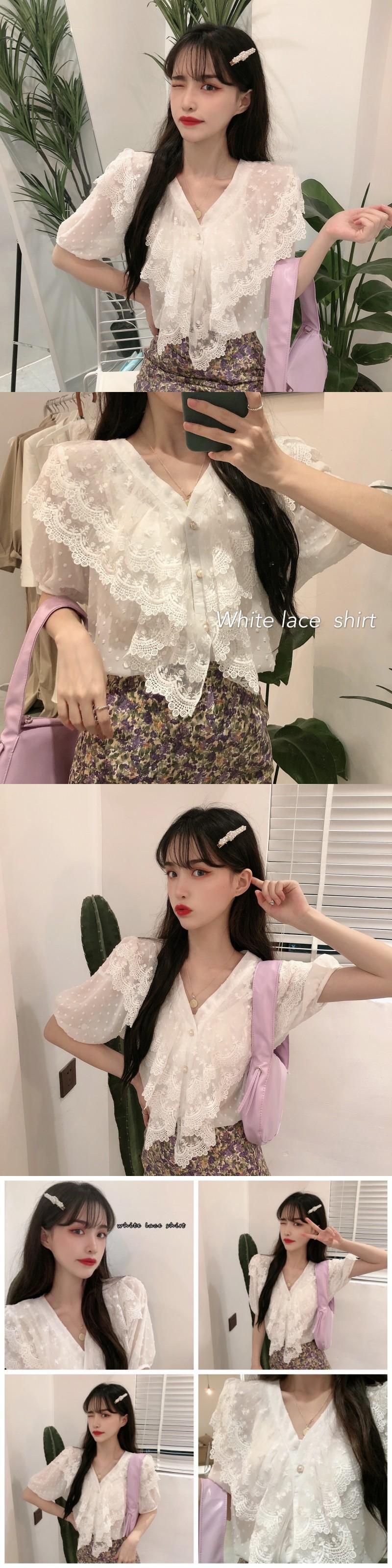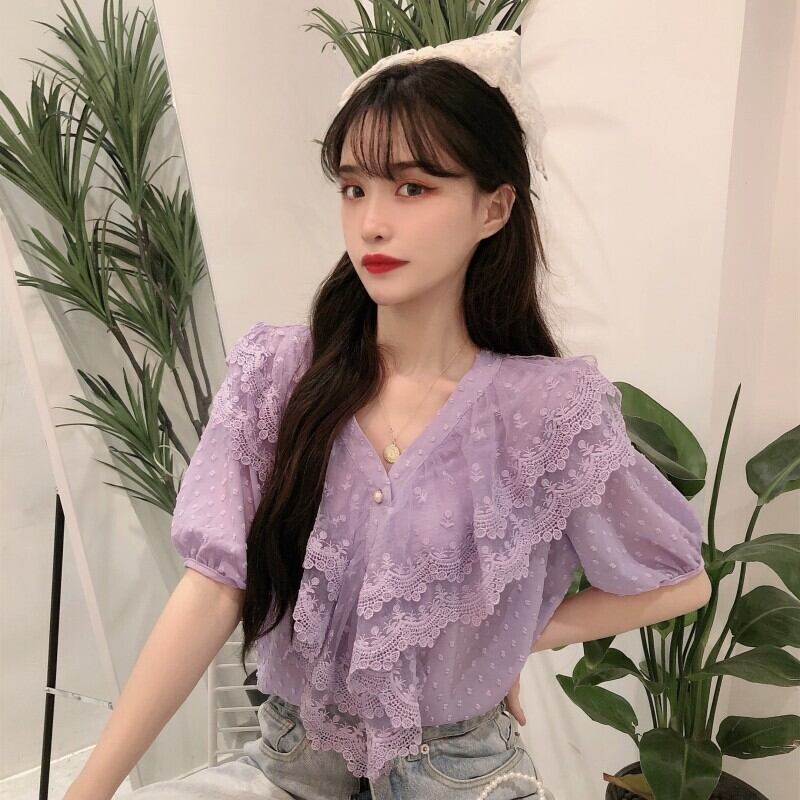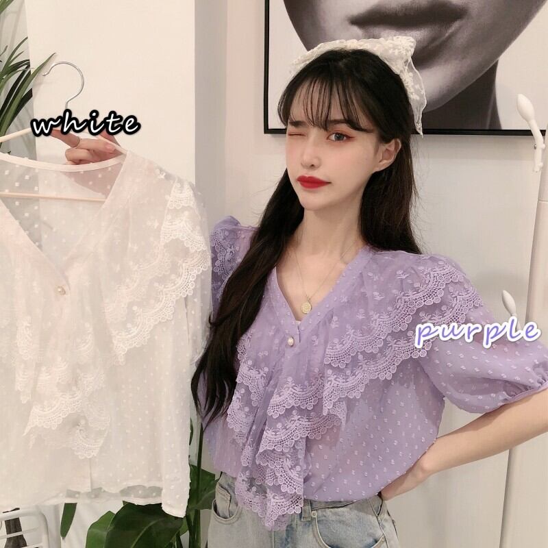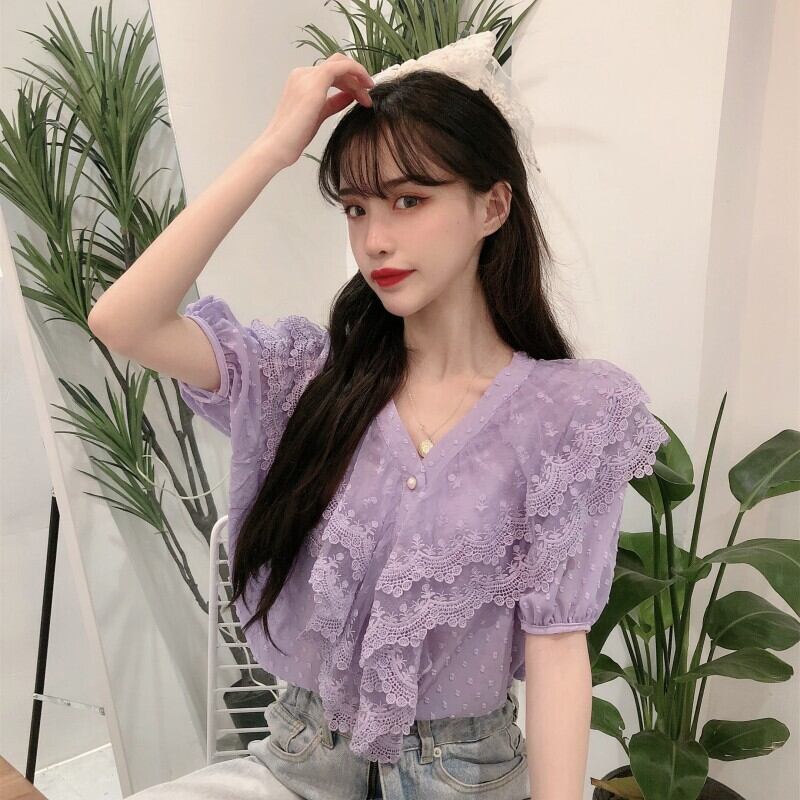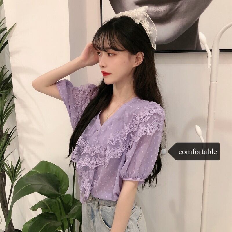 ✞ レースVネック♥カワイイ♥スリーブシャツブラウストップス スウィート ✞ゴスロリ SM ミリ 甘ロリ クラロリ 和ロリ エレガント 黒ロリ 姫ロリ 華ロリ BB-BB8921701
