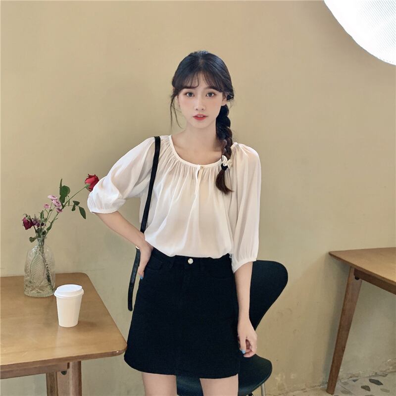 ✞ カジュアルラウンドネック♥カワイイ♥スリーブシャツブラウス スウィート ✞ゴスロリ SM ミリ 甘ロリ クラロリ 和ロリ エレガント 黒ロリ 姫ロリ 華ロリ BB-BB8885920