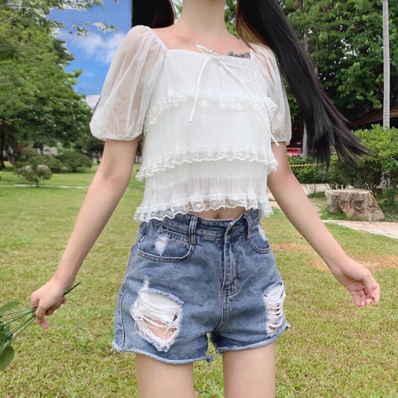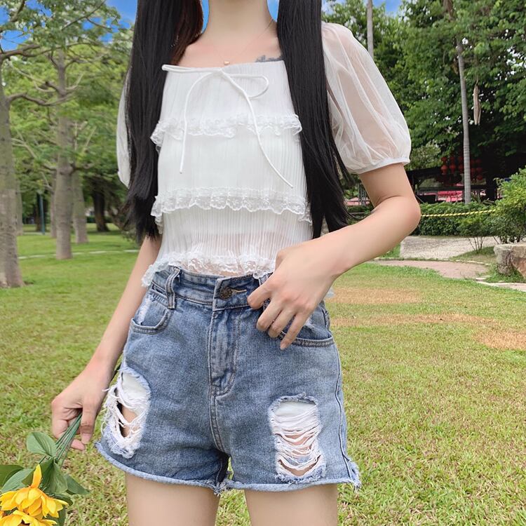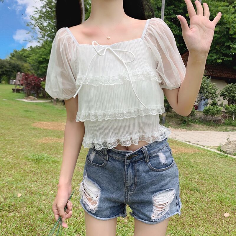 ✞ スタンダードリボンレースウエストすっきり☆着痩せスリーブシャツブラウストップス レトロ スウィート スクウェア ✞ゴスロリ SM ミリ 甘ロリ クラロリ 和ロリ エレガント 黒ロリ 姫ロリ 華ロリ BB-BB5846183