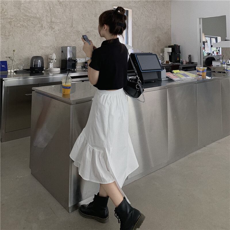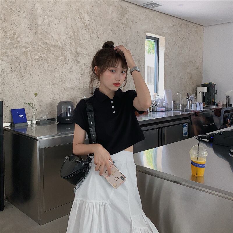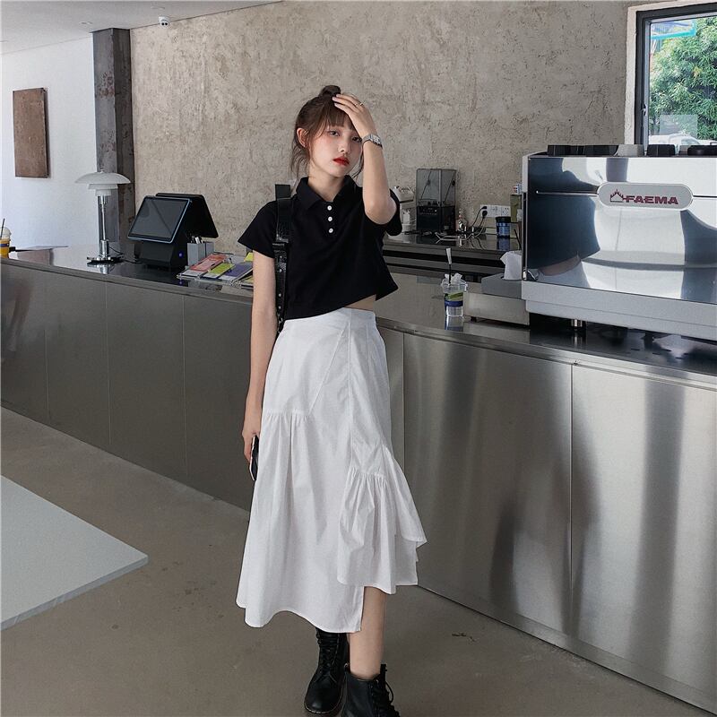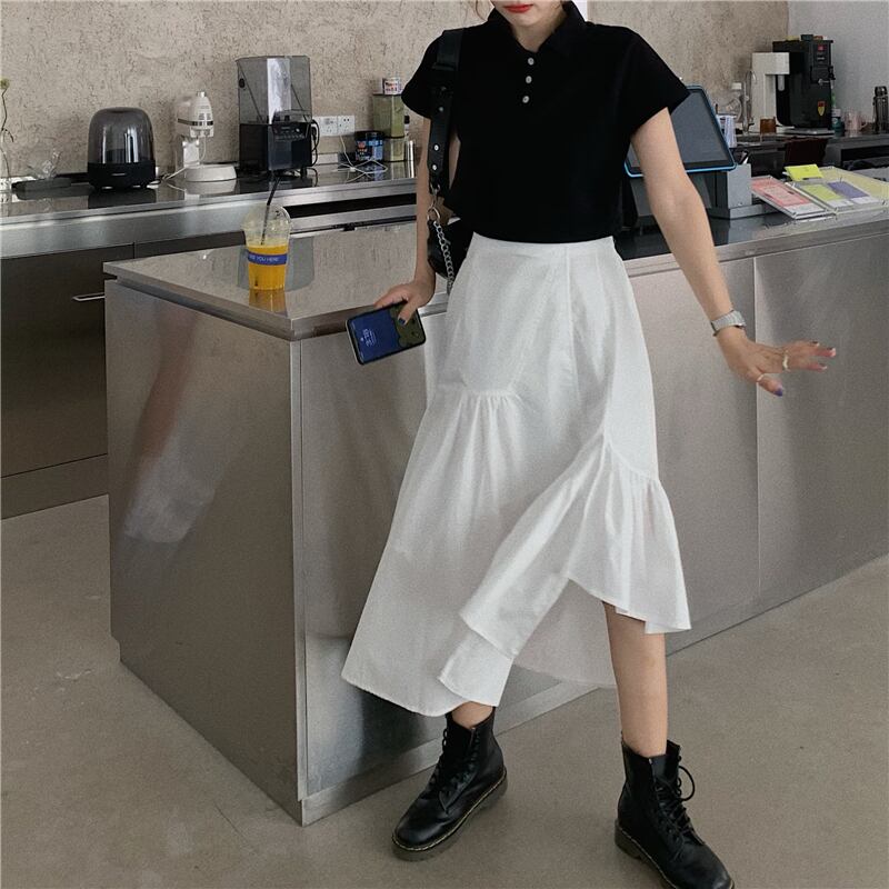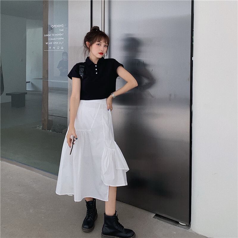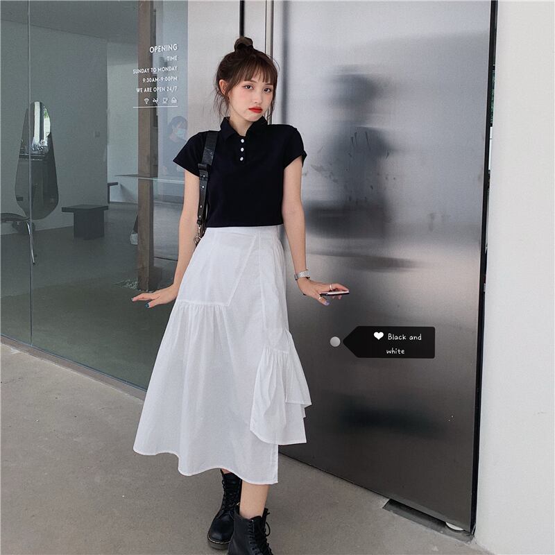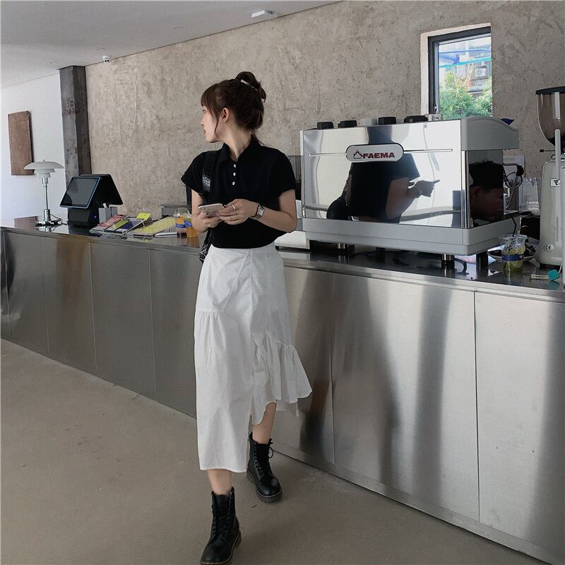 色:黒POLOシャツワンピース,ホワイトスカートワンピース
