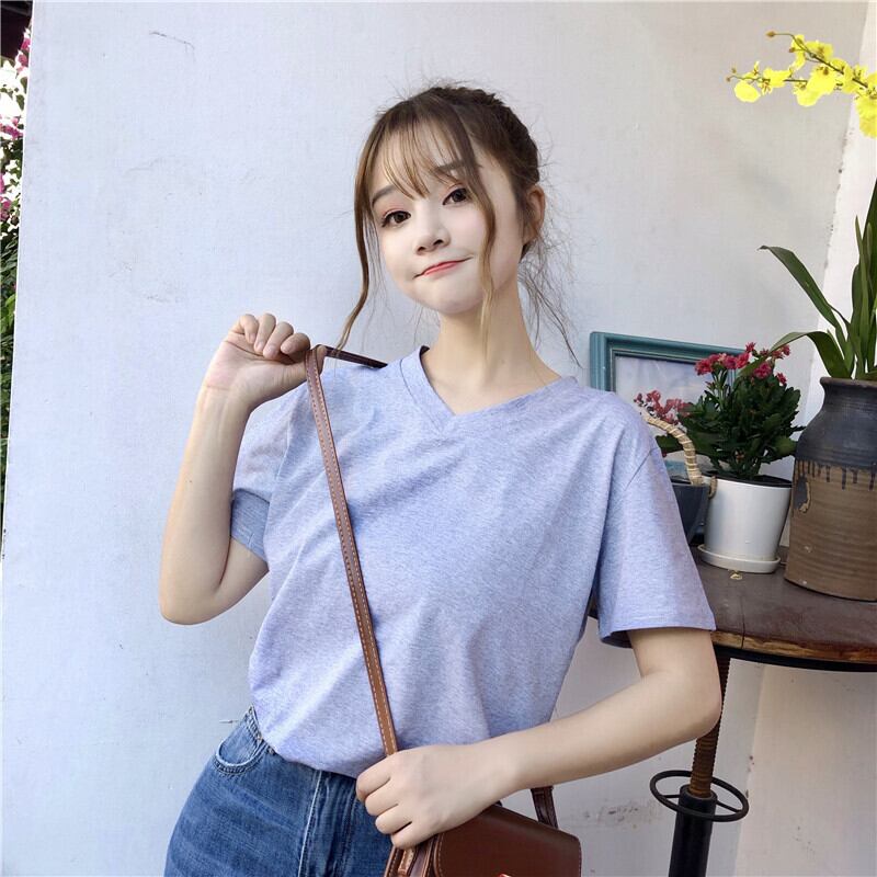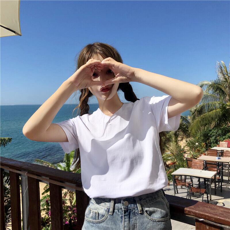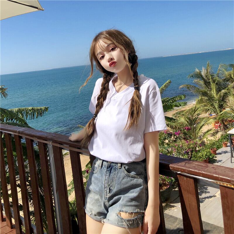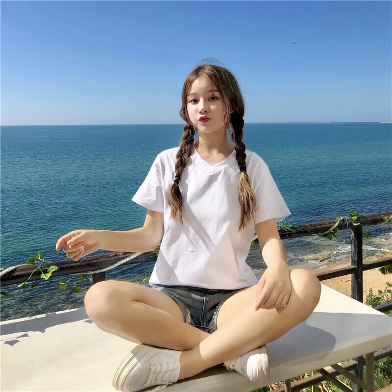 ✞ Tシャツ シャツブラウスソリッド カラーVネック♥カワイイ♥白ストレッチ半袖スリーブ ショート ホワイト エラスティック 伸縮 ソリッドカラー ✞ゴスロリ SM ミリ 甘ロリ クラロリ 和ロリ エレガント 黒ロリ 姫ロリ 華ロリ BB-BB6744980