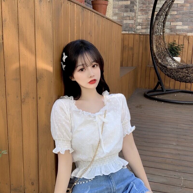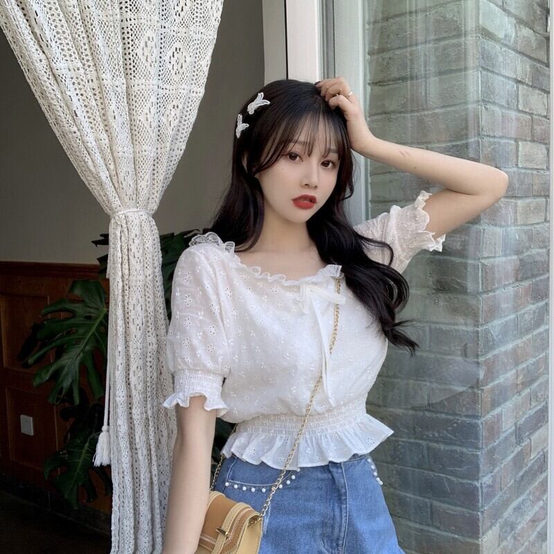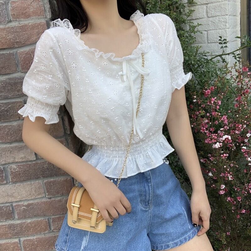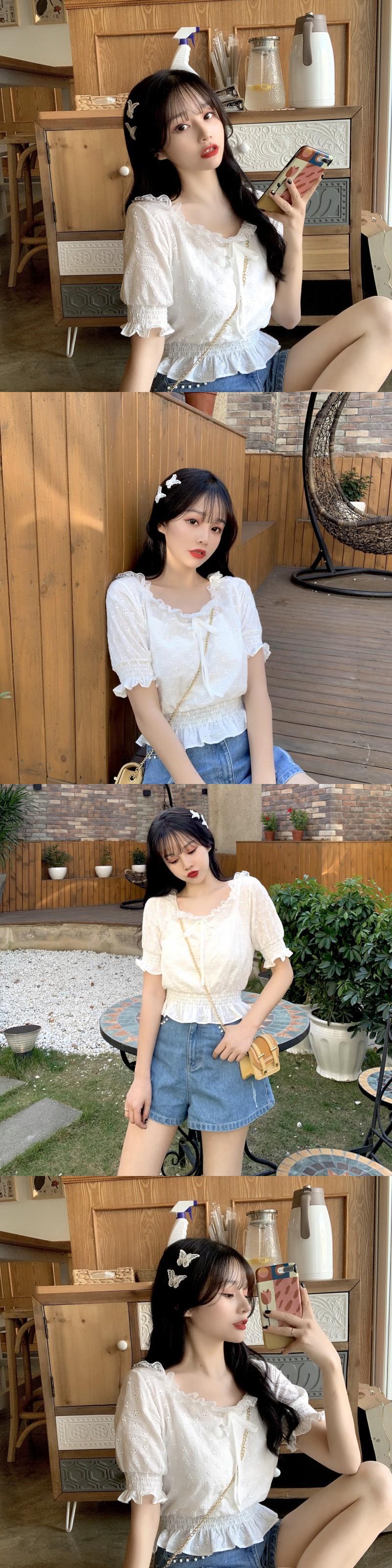 ✞ レースラウンドネック半袖スリーブプリーツスリムシャツブラウス ショート スウィート ✞ゴスロリ SM ミリ 甘ロリ クラロリ 和ロリ エレガント 黒ロリ 姫ロリ 華ロリ BB-BB7755643