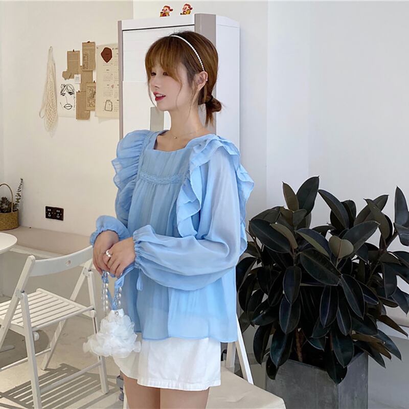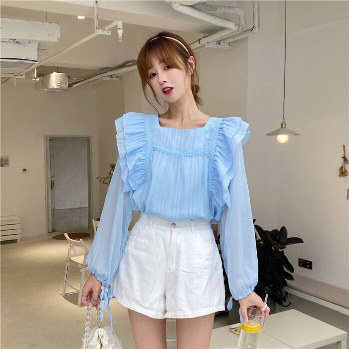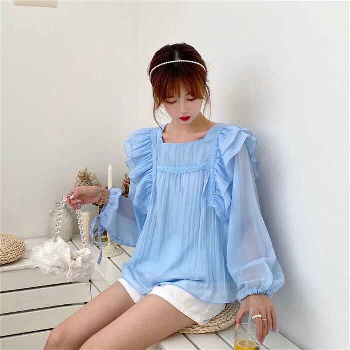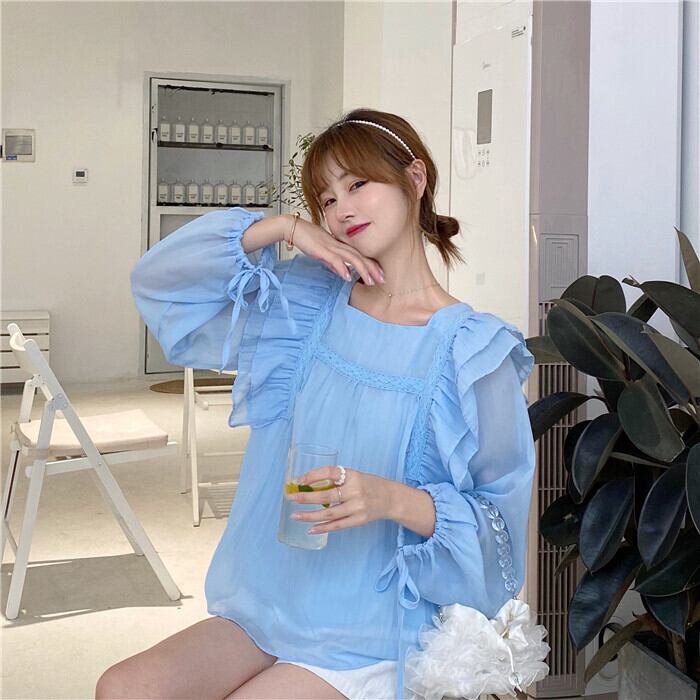 ✞ レーススリーブシフォンシャツブラウス ランタンスリーブ スウィート スクウェア ステッチ ✞ゴスロリ SM ミリ 甘ロリ クラロリ 和ロリ エレガント 黒ロリ 姫ロリ 華ロリ BB-BB3608826