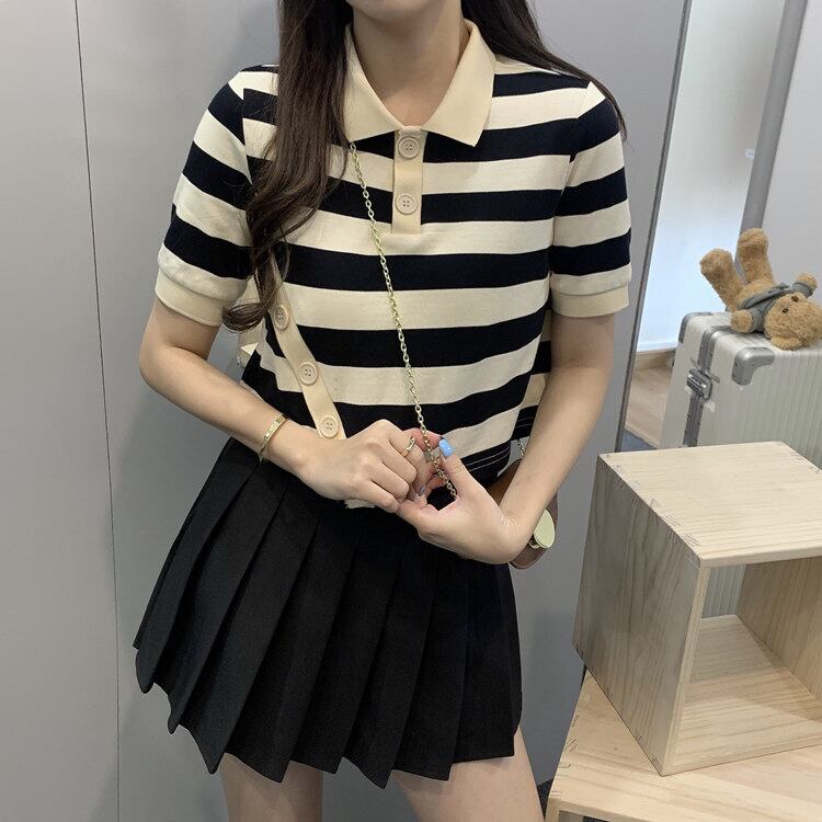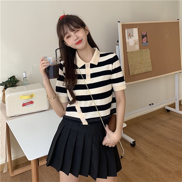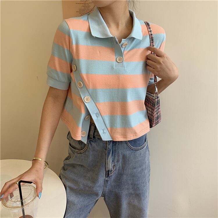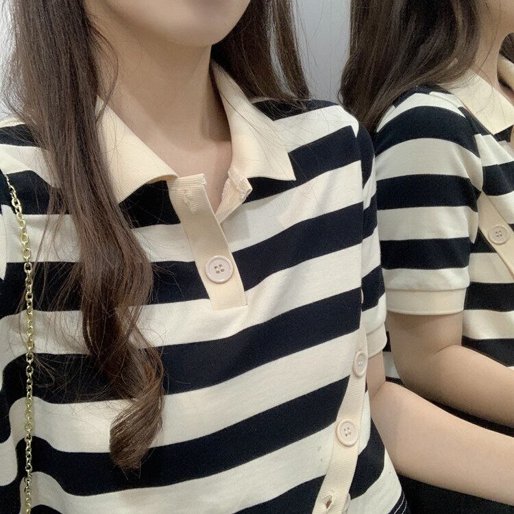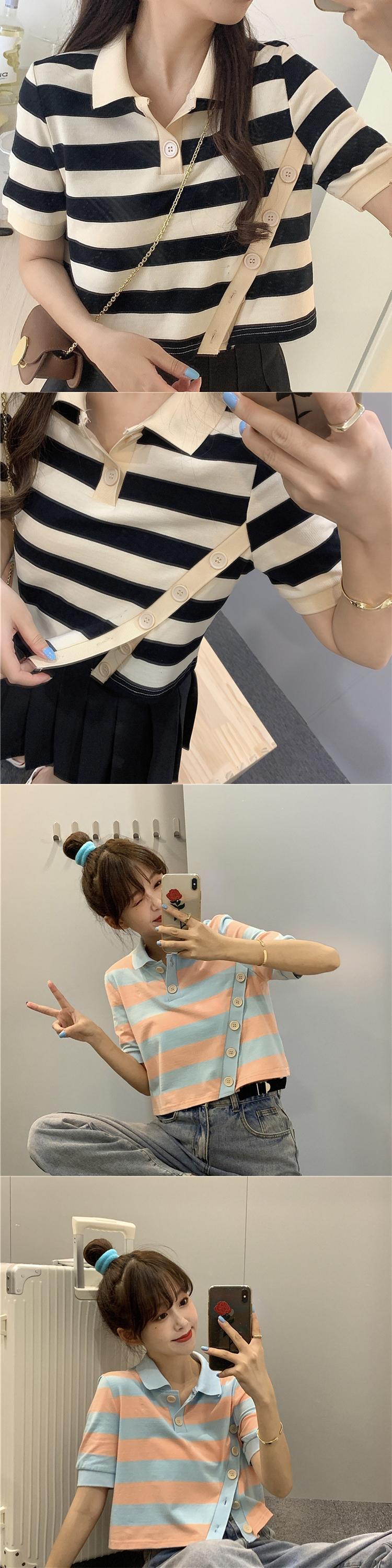 ✞ きれいめ☆半袖スリーブボタンストライプTシャツ 大人女子☆ ショート ステッチ ✞ゴスロリ SM ミリ 甘ロリ クラロリ 和ロリ エレガント 黒ロリ 姫ロリ 華ロリ BB-BB6145787