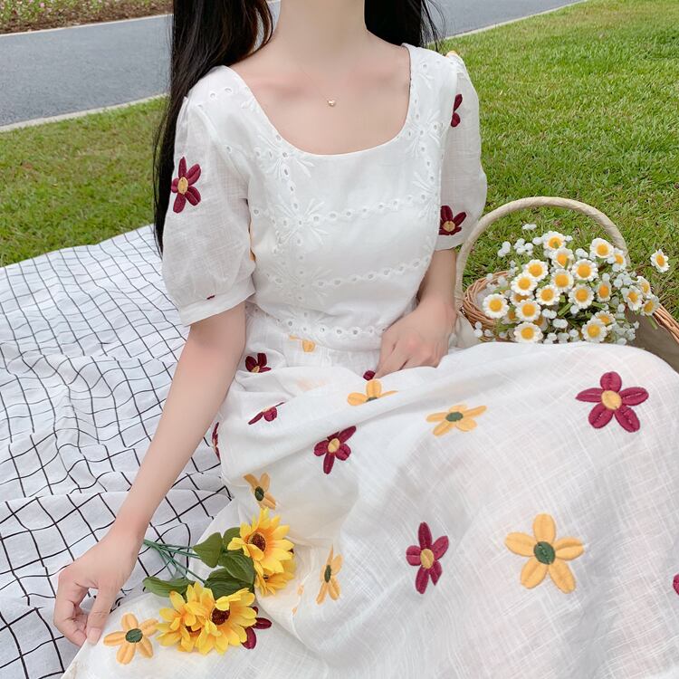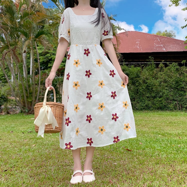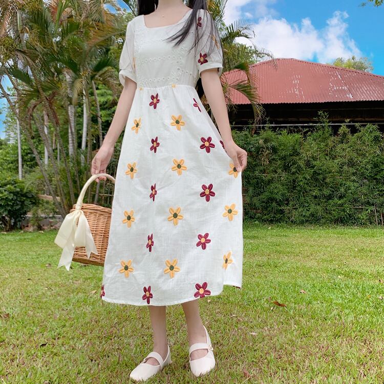 ✞ 花柄刺繍Aラインスウィートワンピースドレス フラワーデザイン スクウェア ✞ゴスロリ SM ミリ 甘ロリ クラロリ 和ロリ エレガント 黒ロリ 姫ロリ 華ロリ BB-BB8426564