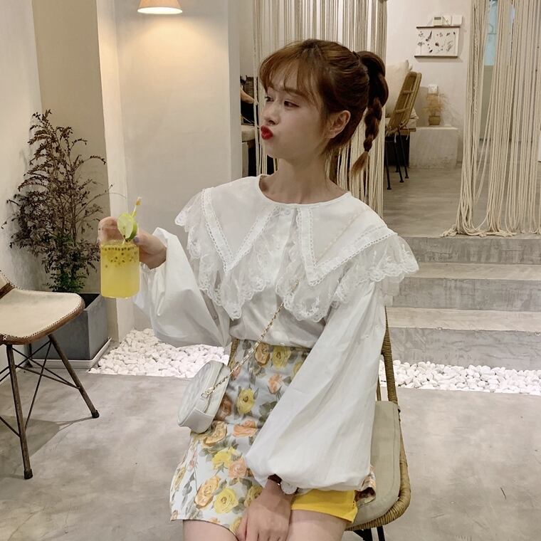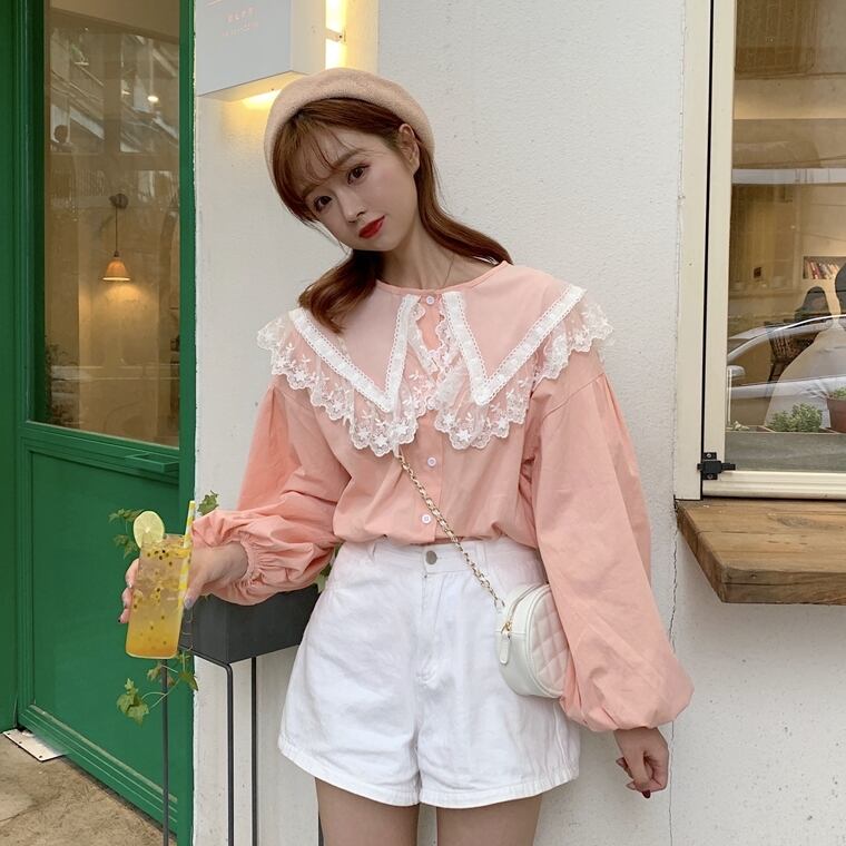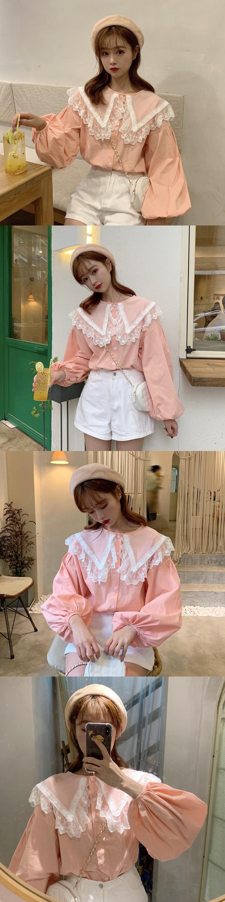 ✞ レーストップス ランタンロングスリーブシャツブラウス スウィート ガーリー ステッチ ✞ゴスロリ SM ミリ 甘ロリ クラロリ 和ロリ エレガント 黒ロリ 姫ロリ 華ロリ BB-BB4773912
