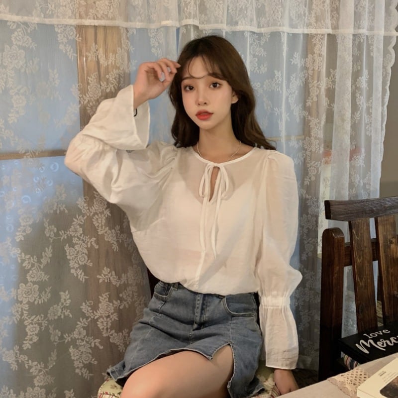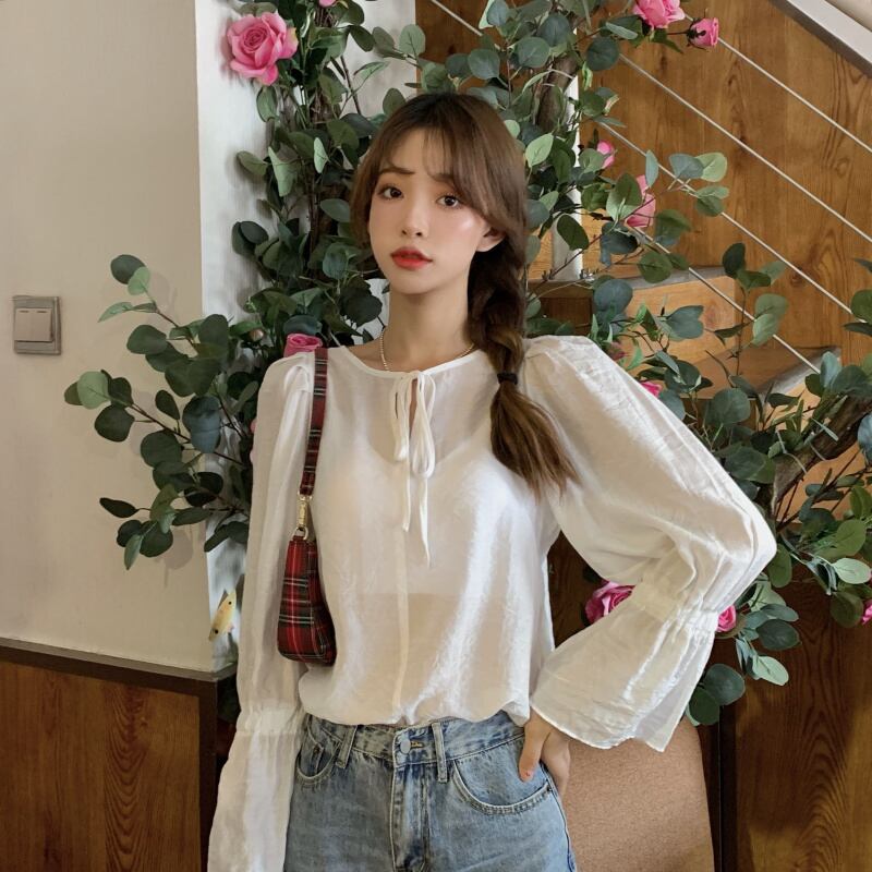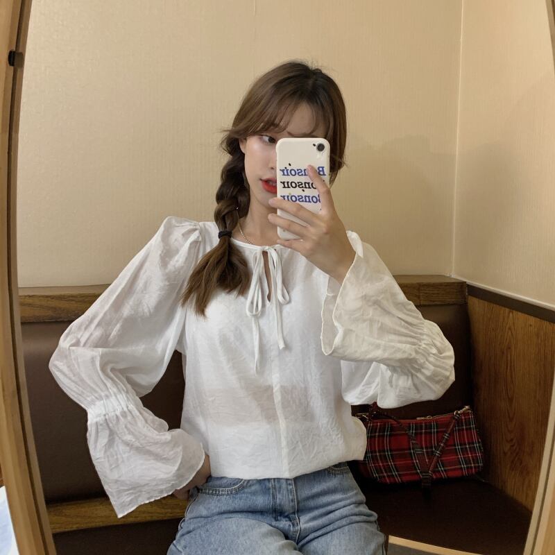 ✞ レースラウンドネック♥カワイイ♥スリーブシャツブラウス大人女子☆ ロング ベルスリーブ スウィート ✞ゴスロリ SM ミリ 甘ロリ クラロリ 和ロリ エレガント 黒ロリ 姫ロリ 華ロリ BB-BB0884567
