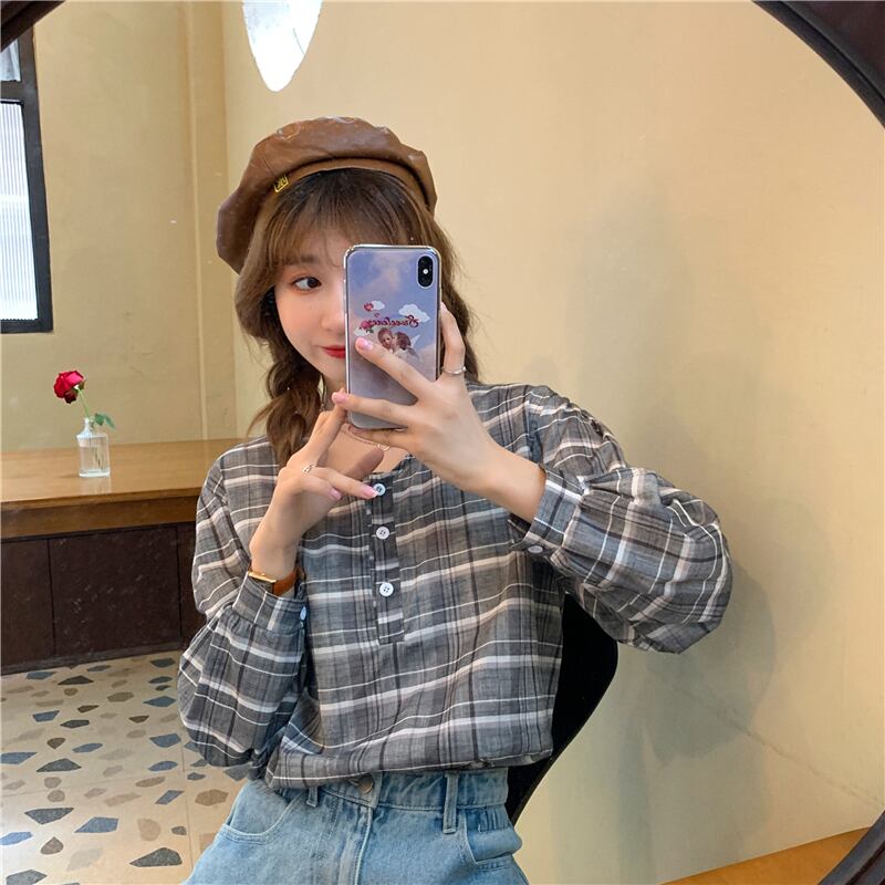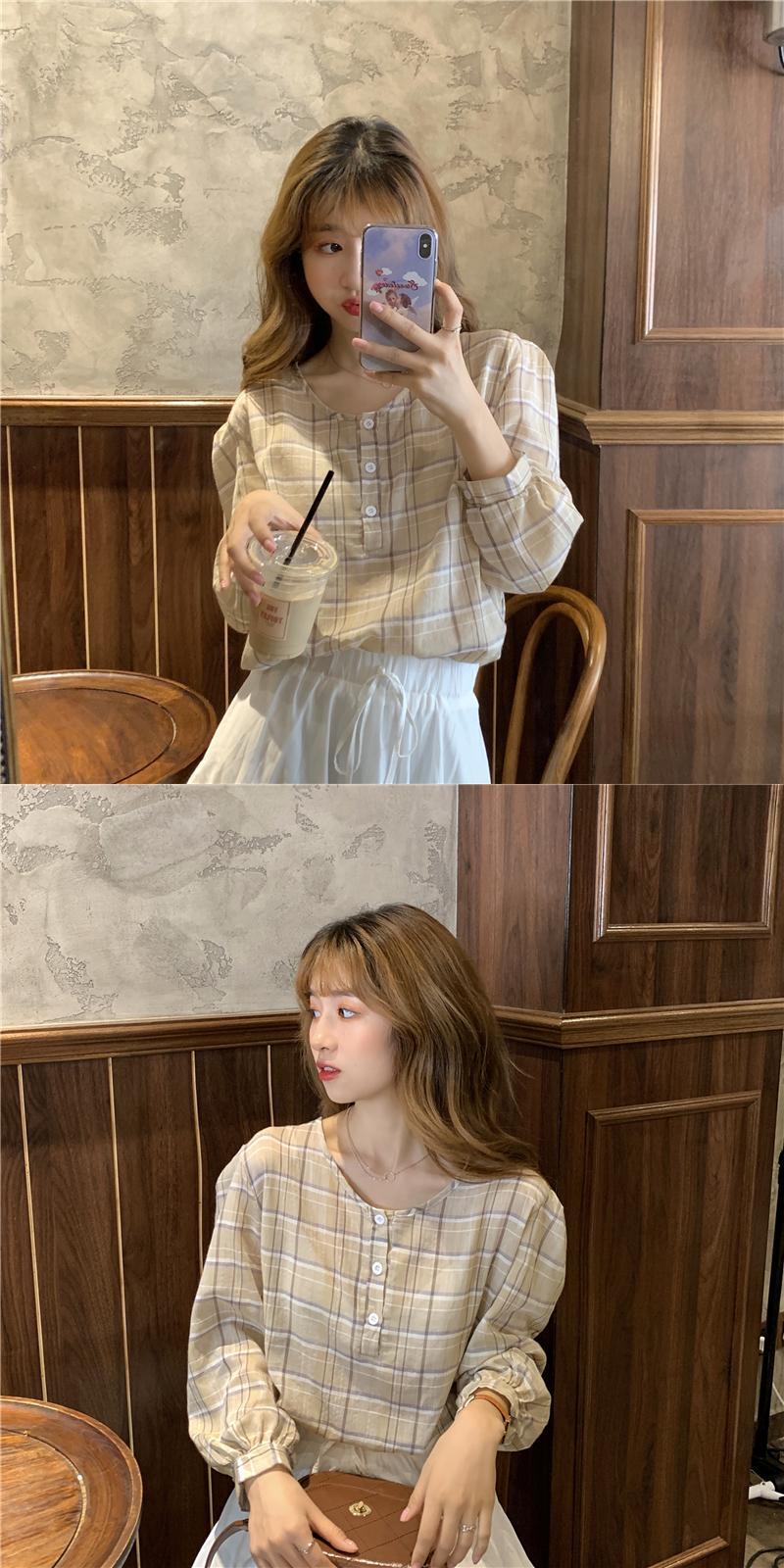 ✞ シャツブラウス大人女子☆♥カワイイ♥ラウンドネックチェック柄トップス ロング スウィート ✞ゴスロリ SM ミリ 甘ロリ クラロリ 和ロリ エレガント 黒ロリ 姫ロリ 華ロリ BB-BB9888690