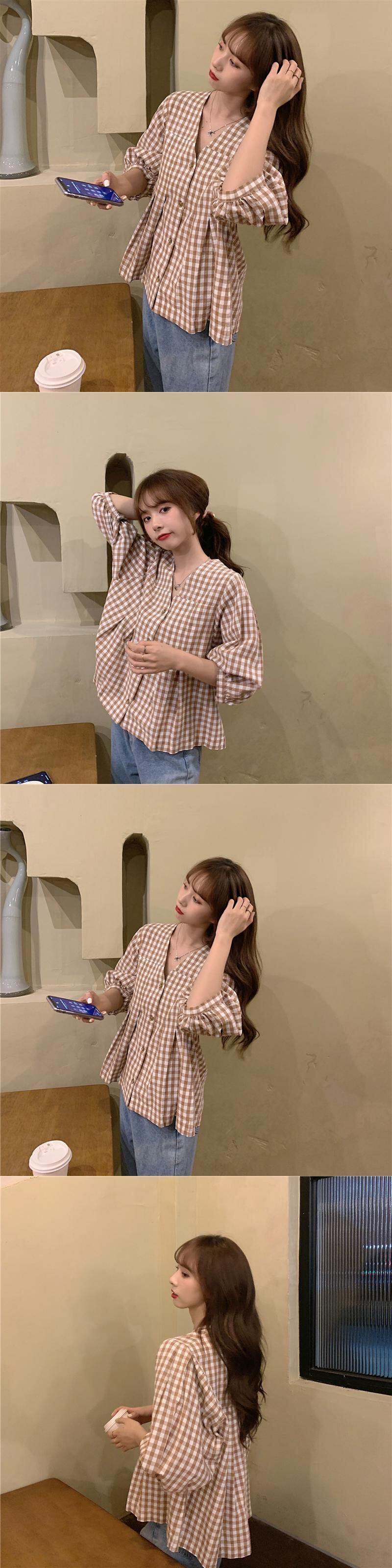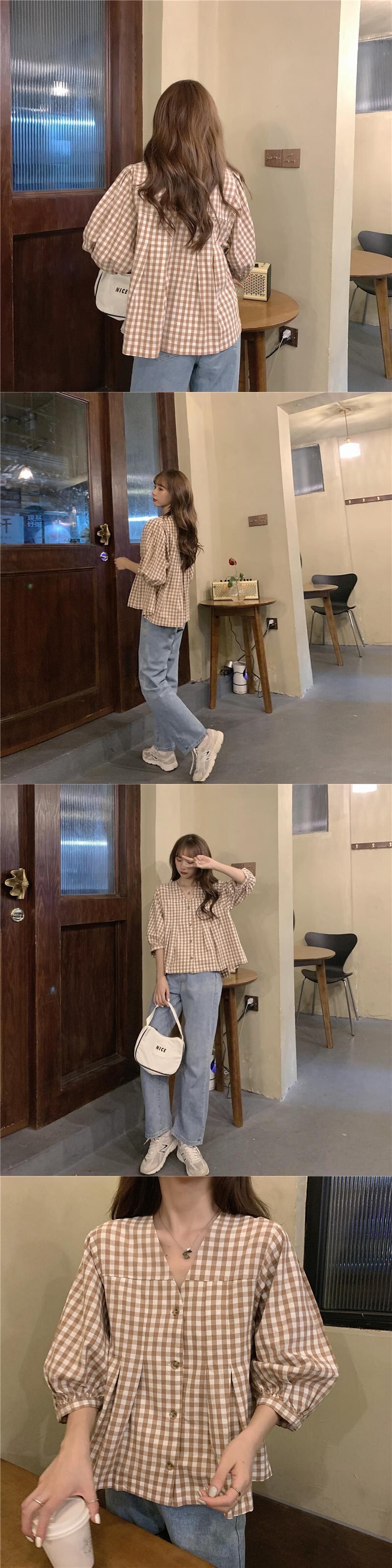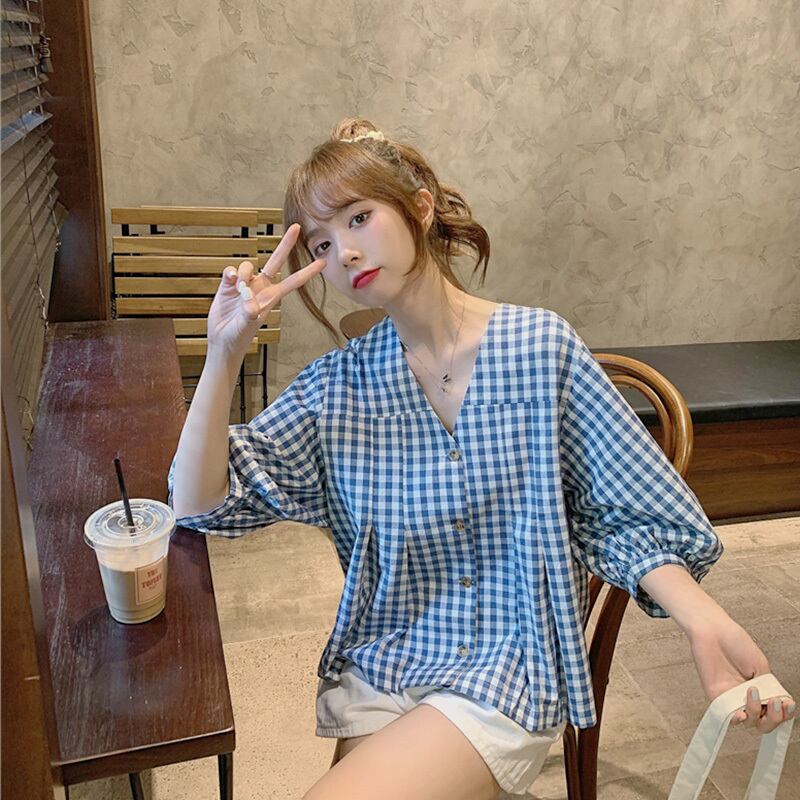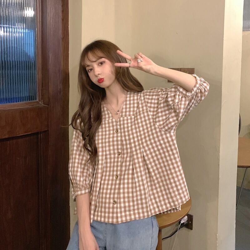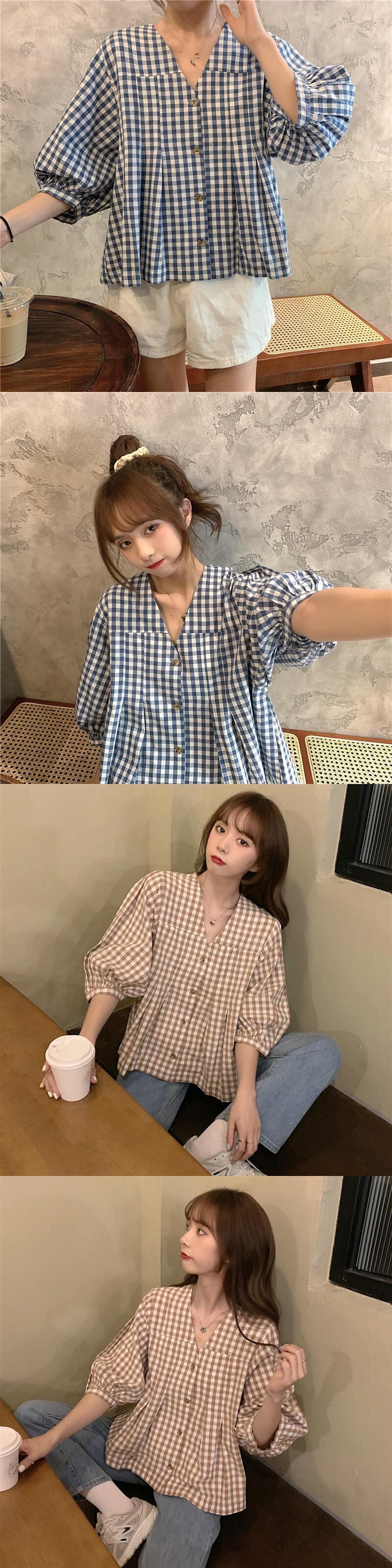 ✞ きれいめ☆スタンダードVネックチェック柄♥カワイイ♥スリーブシャツブラウスブラウス レトロ ✞ゴスロリ SM ミリ 甘ロリ クラロリ 和ロリ エレガント 黒ロリ 姫ロリ 華ロリ BB-BB1884418