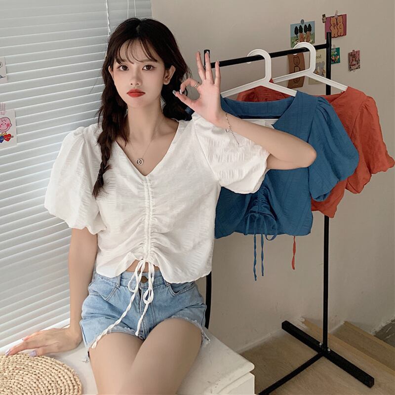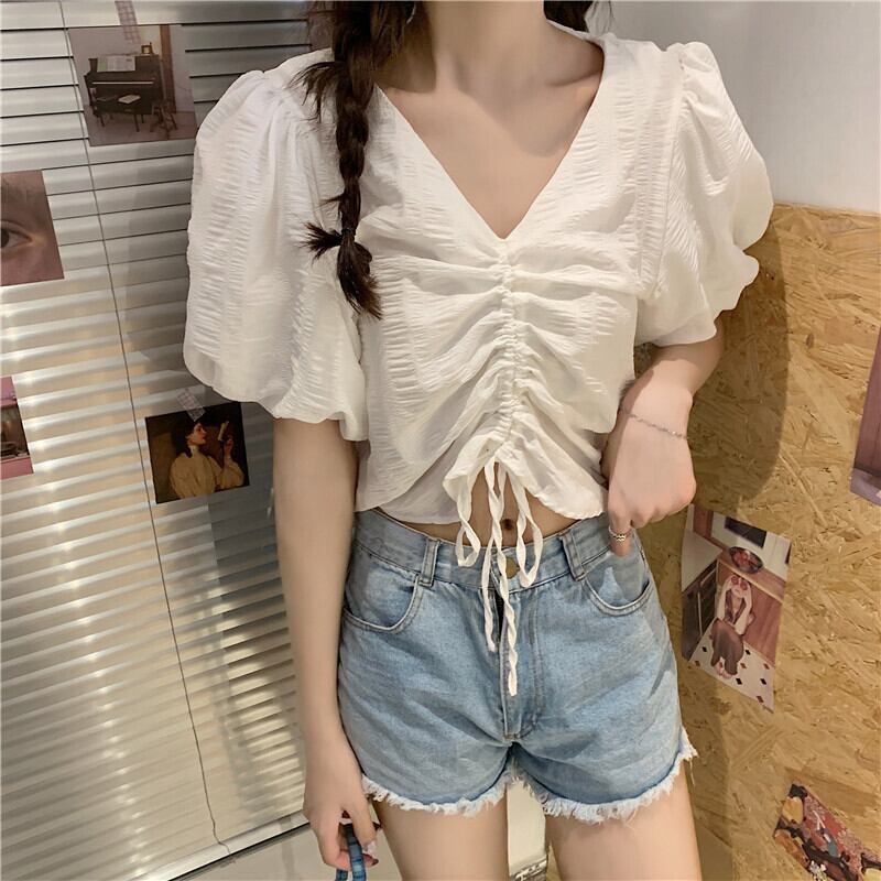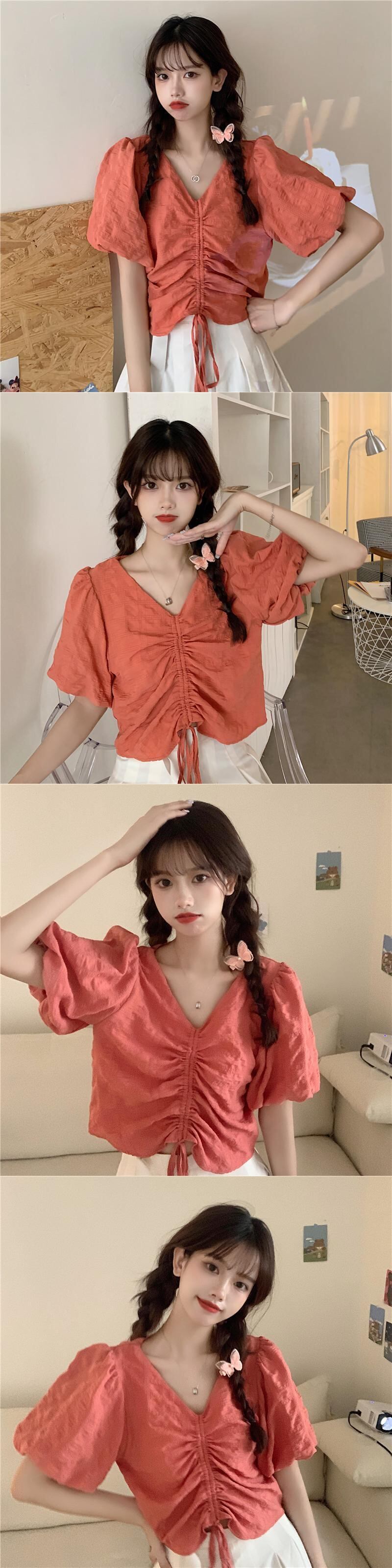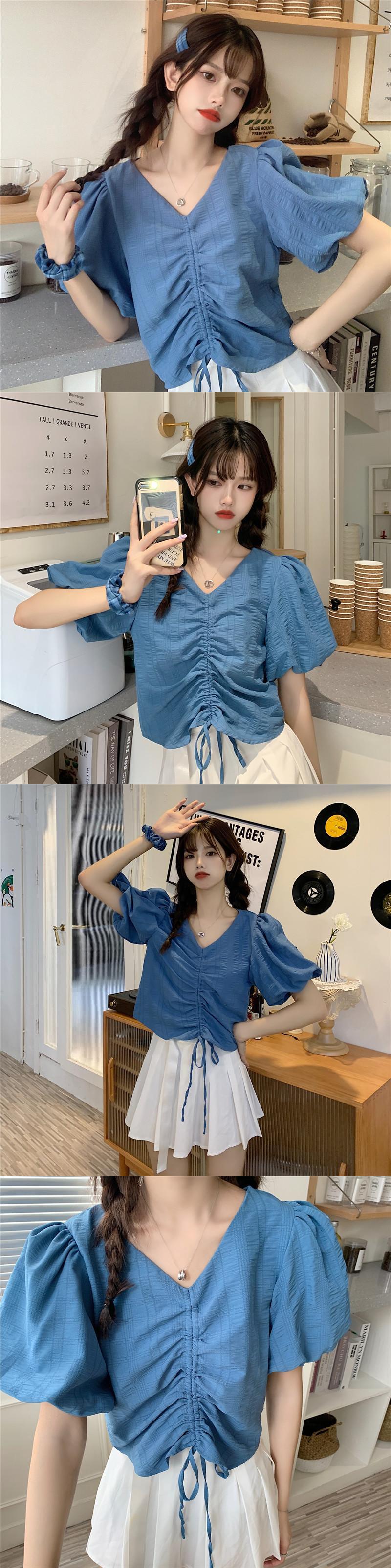 ✞ Vネックプリーツギャザーショートシャツブラウス ✞ゴスロリ SM ミリ 甘ロリ クラロリ 和ロリ エレガント 黒ロリ 姫ロリ 華ロリ BB-BB8301589