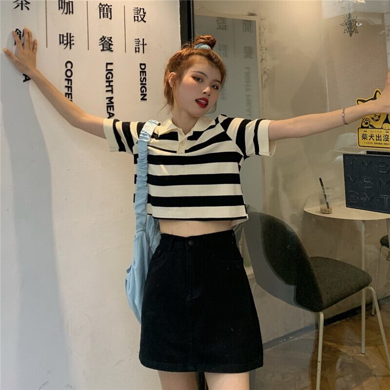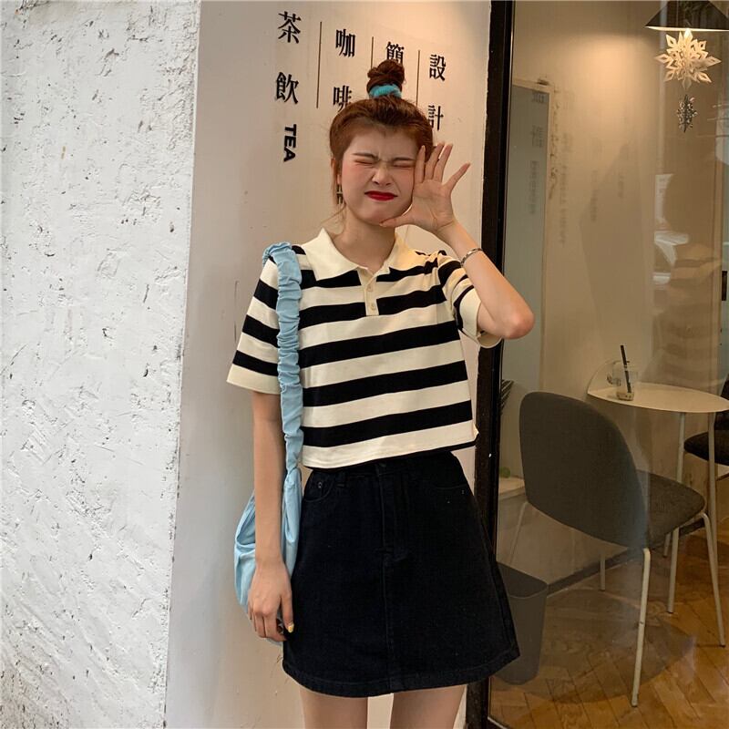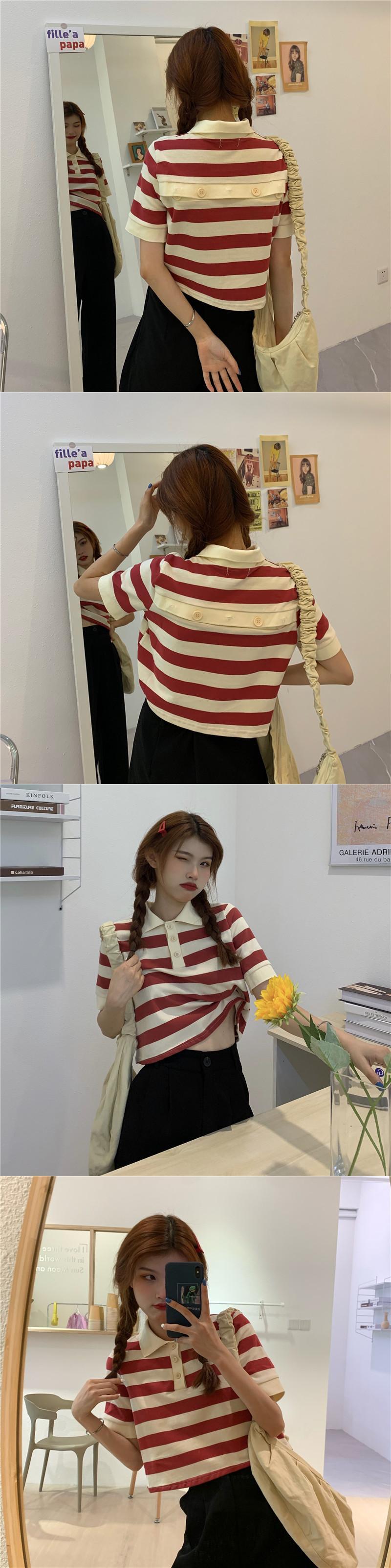 ✞ ホルターバック♥カワイイ♥ショートストライプTシャツ トップス ✞ゴスロリ SM ミリ 甘ロリ クラロリ 和ロリ エレガント 黒ロリ 姫ロリ 華ロリ BB-BB3941184
