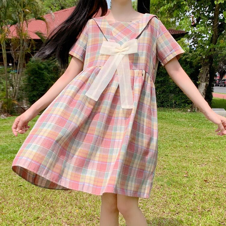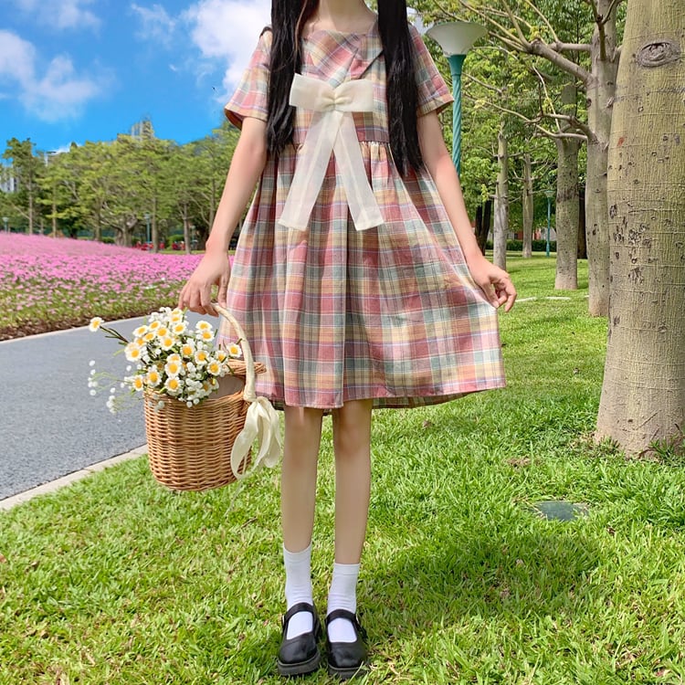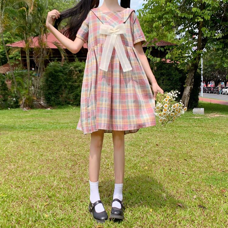✞ きれいめ☆ネイビーメッシュリボン半袖スリーブチェック柄 ショート スウィート ✞ゴスロリ SM ミリ 甘ロリ クラロリ 和ロリ エレガント 黒ロリ 姫ロリ 華ロリ BB-BB1329518