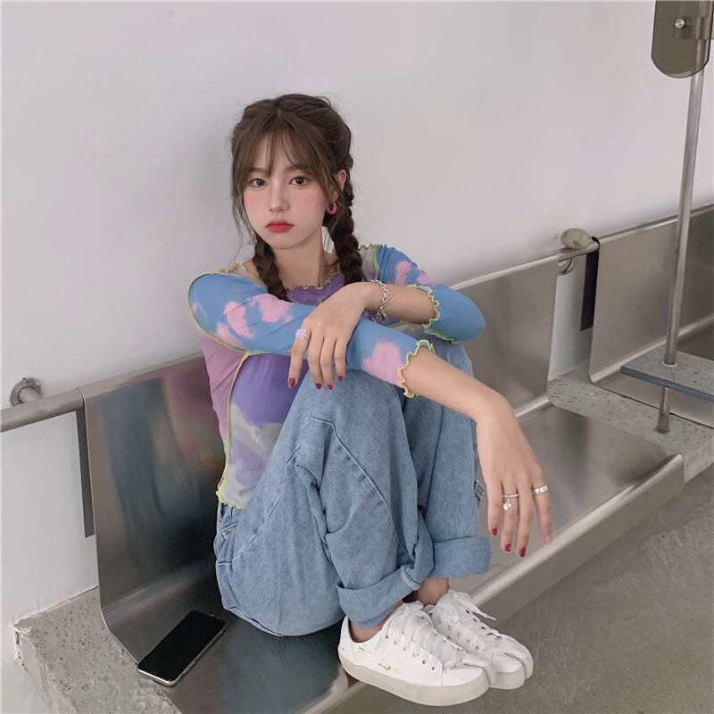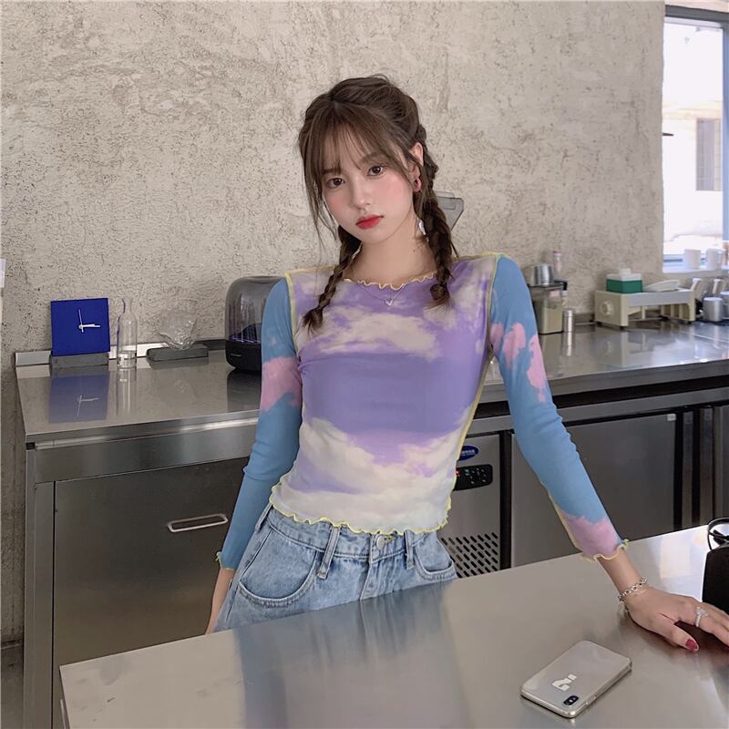 ✞ クラウド柄スリムフィットロングTシャツ カットソー♥カワイイ♥ラウンドネック トップス ロング ✞ゴスロリ SM ミリ 甘ロリ クラロリ 和ロリ エレガント 黒ロリ 姫ロリ 華ロリ BB-BB7804097