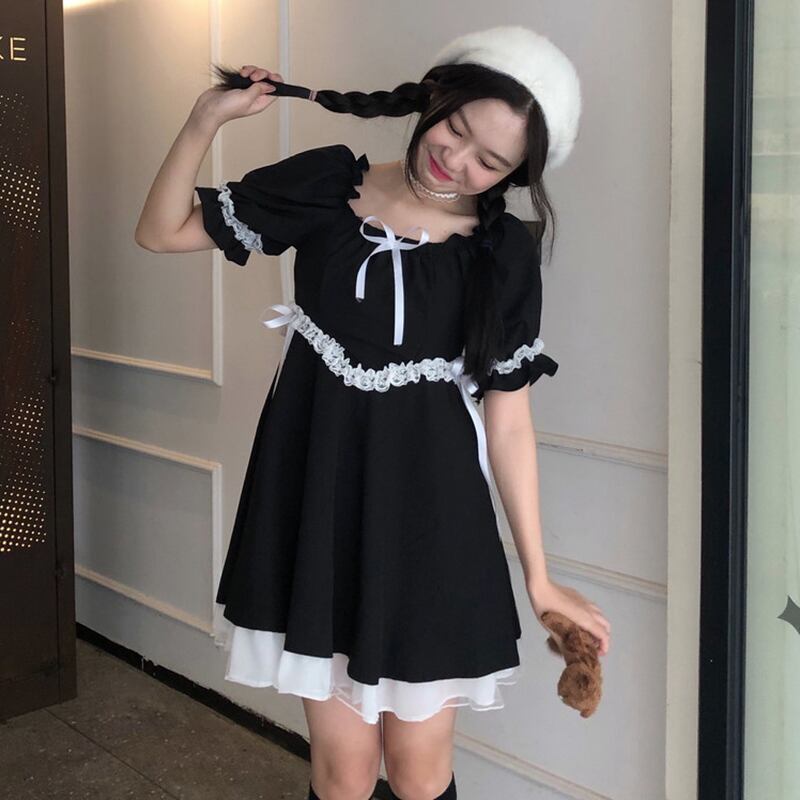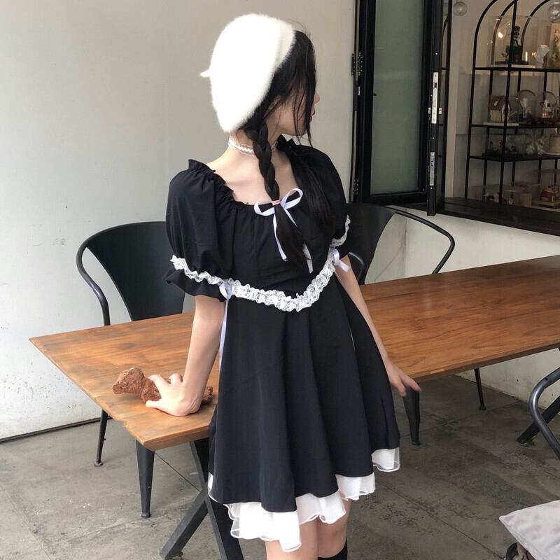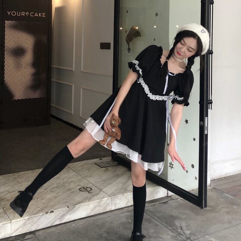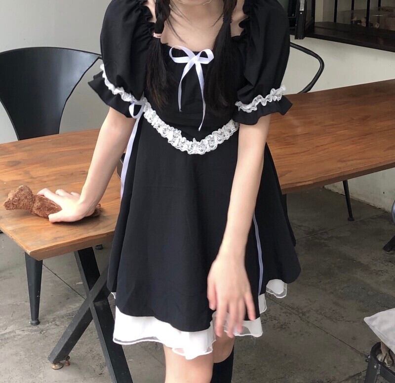 ✞ゴシックりぼんレースバンドペプラムワンピースドレスOP パフスリーブ♥レトロ スウィート ✞ゴスロリ SM ミリ 甘ロリ クラロリ 和ロリ エレガント 黒ロリ 姫ロリ 華ロリ BB-BB6658687