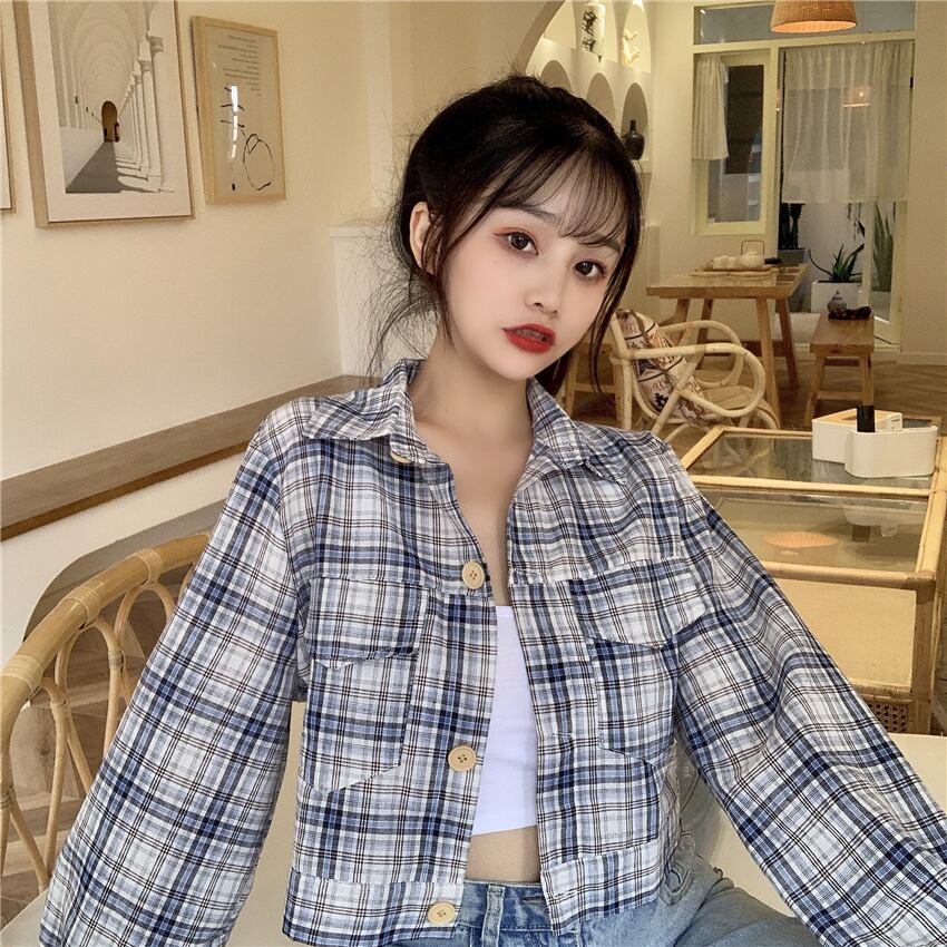 ✞ シャツブラウススタンダードカラーチェック柄ショート長袖スリーブカーディガンジャケット ロング レトロ ✞ゴスロリ SM ミリ 甘ロリ クラロリ 和ロリ エレガント 黒ロリ 姫ロリ 華ロリ BB-BB1897810