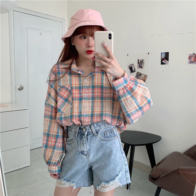 ✞ きれいめ☆カラーチェック柄シャツブラウス大人女子☆♥カワイイ♥トップス ロング スウィート ✞ゴスロリ SM ミリ 甘ロリ クラロリ 和ロリ エレガント 黒ロリ 姫ロリ 華ロリ BB-BB3565645
