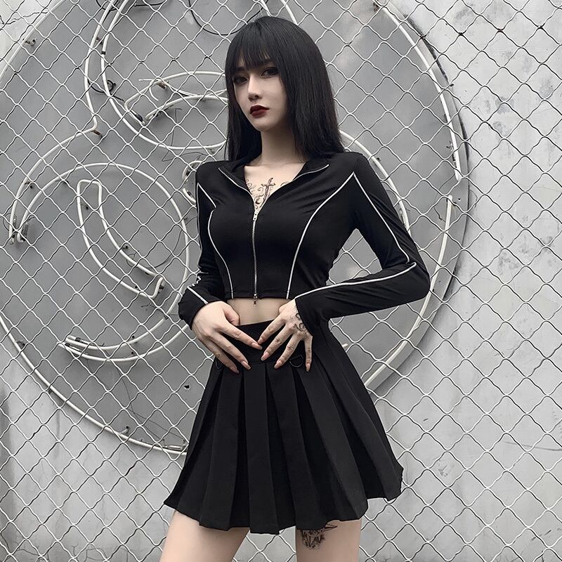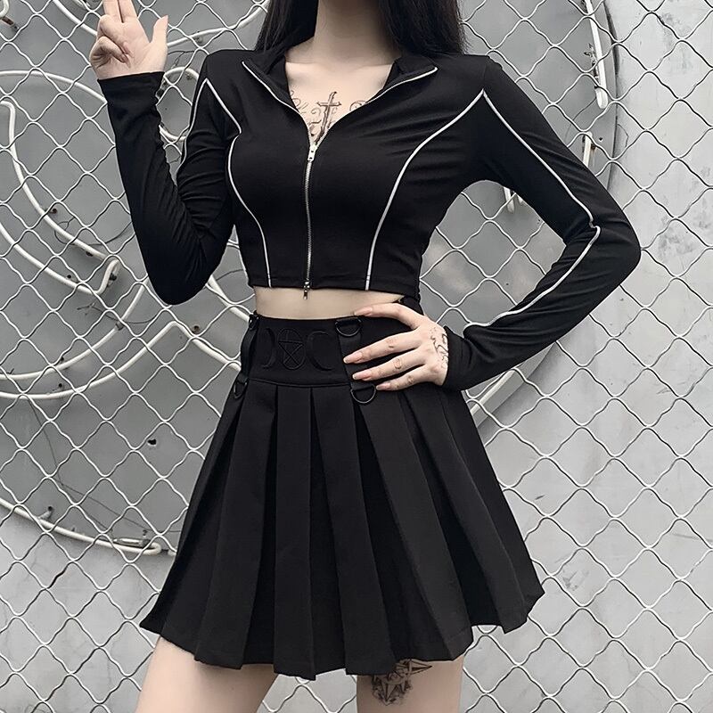 ✞✝✞ Tシャツ ダブルジッパーショートトップス スリム♥カワイイ♥ ロング ✞✝✞ ゴスロリ SM ミリ 甘ロリ クラロリ 和ロリ エレガント 黒ロリ 姫ロリ 華ロリ AA-AA8456200