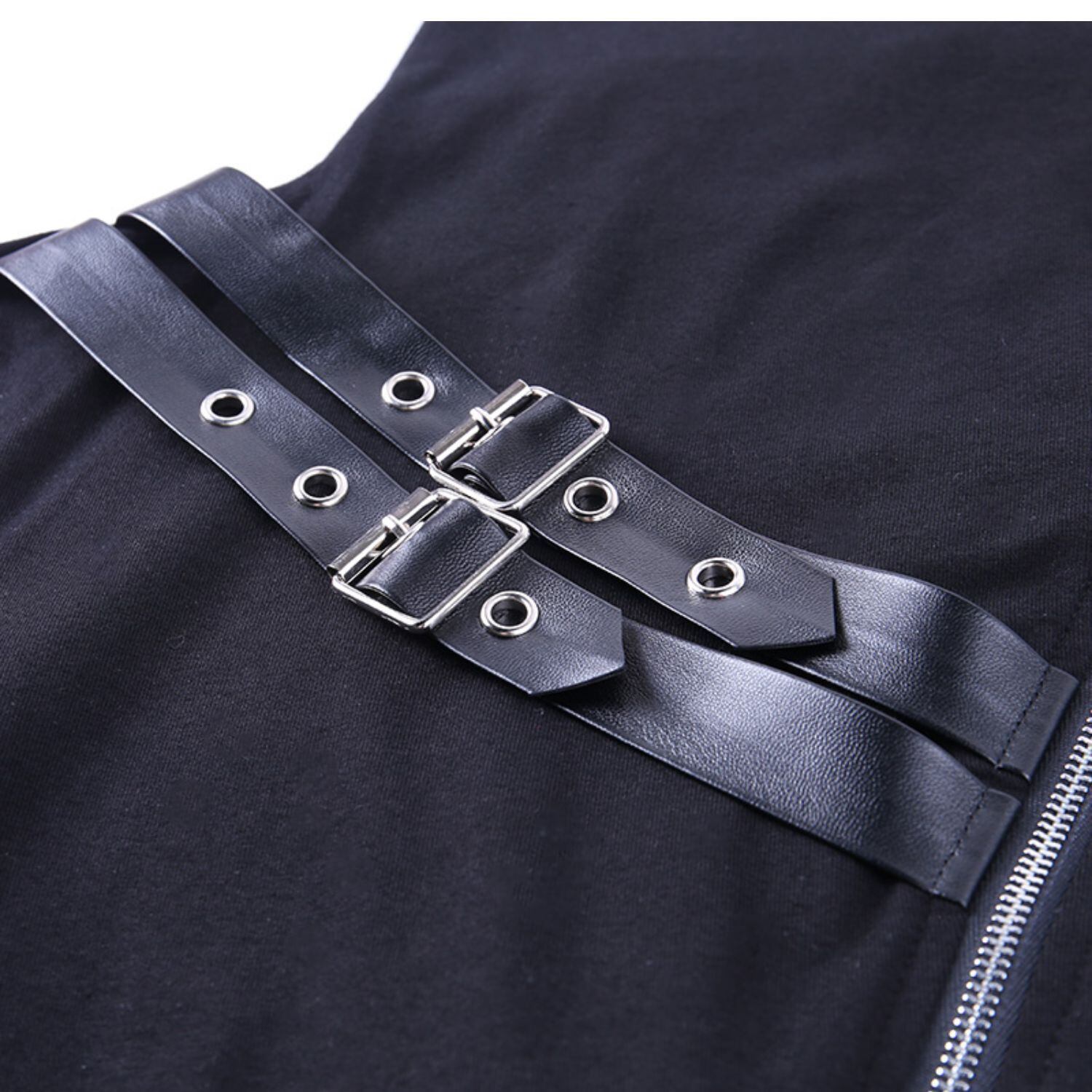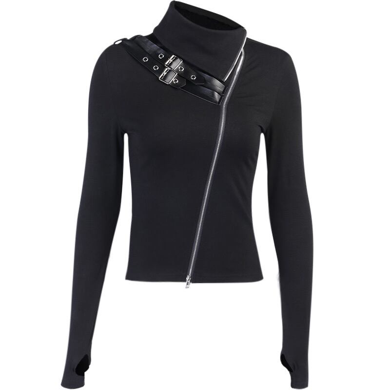 ✞✝✞ ダークネス♡レザー ダブルベルトジッパーブラックロングスリーブシャツ シャツブラウス コットン ステッチ ✞✝✞ ゴスロリ SM ミリ 甘ロリ クラロリ 和ロリ エレガント 黒ロリ 姫ロリ 華ロリ AA-AA5467236