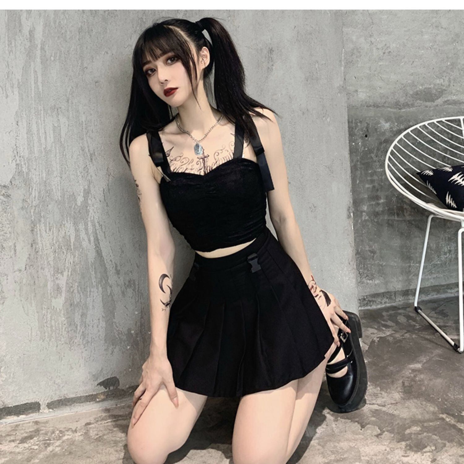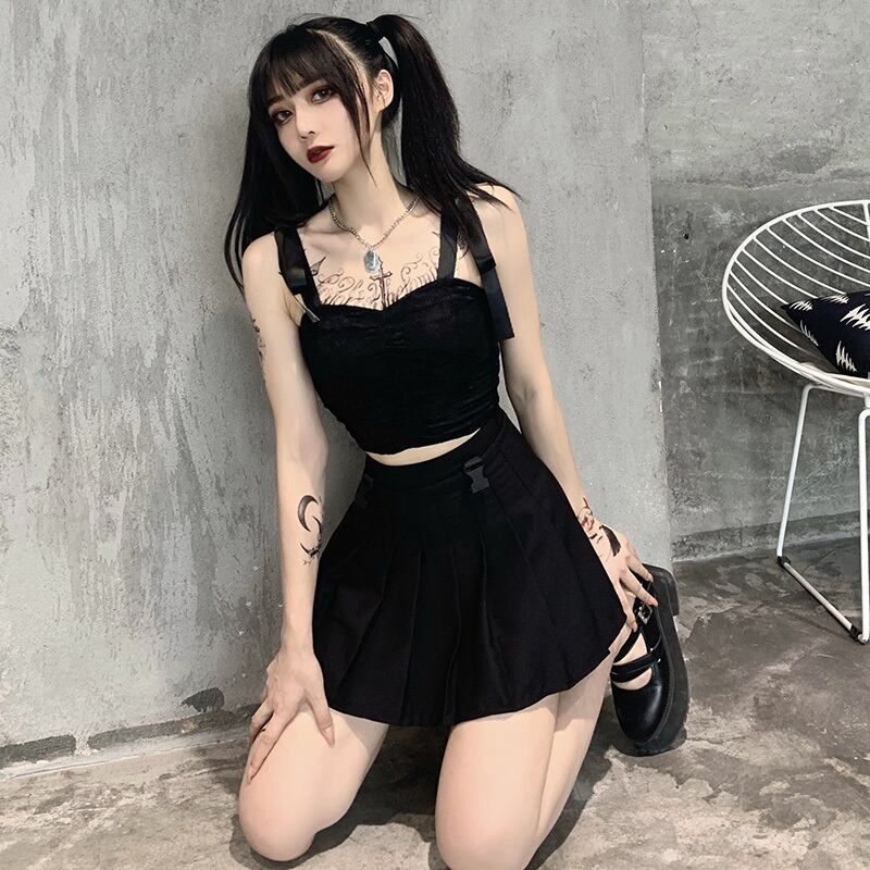 ✞✝✞ ブラックレースキャミソールバンドショートトップス ✞✝✞ ゴスロリ SM ミリ 甘ロリ クラロリ 和ロリ エレガント 黒ロリ 姫ロリ 華ロリ AA-AA5371707