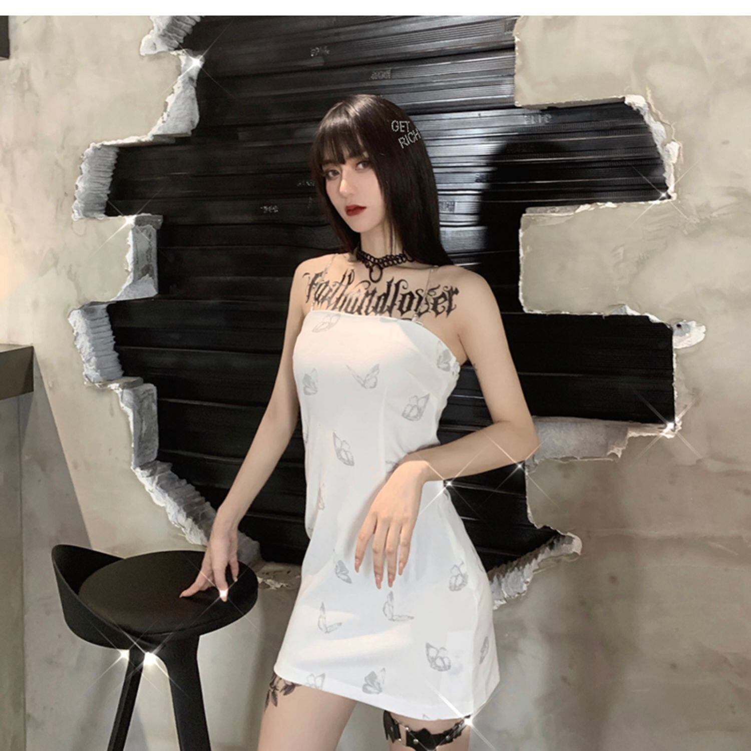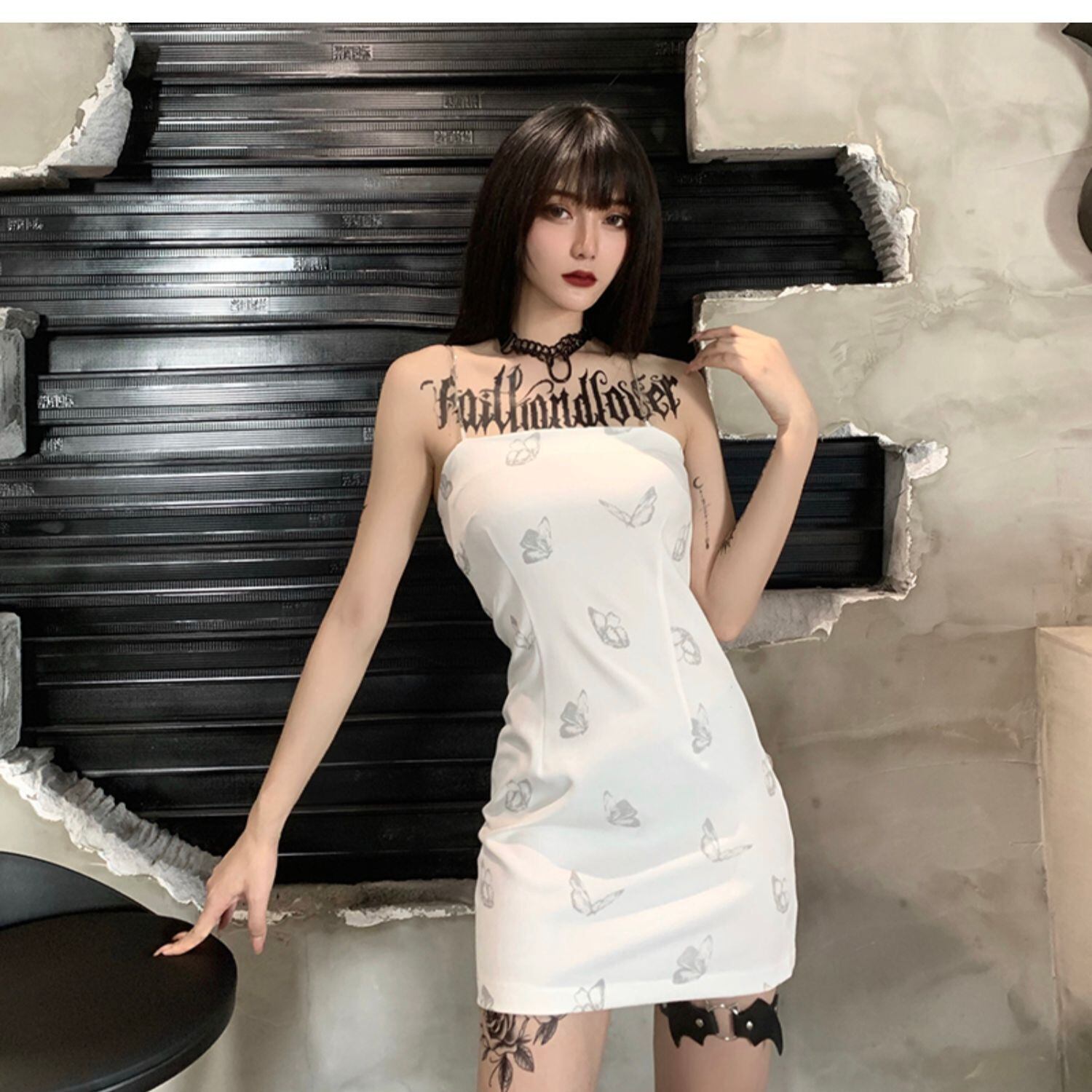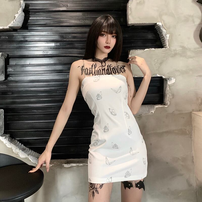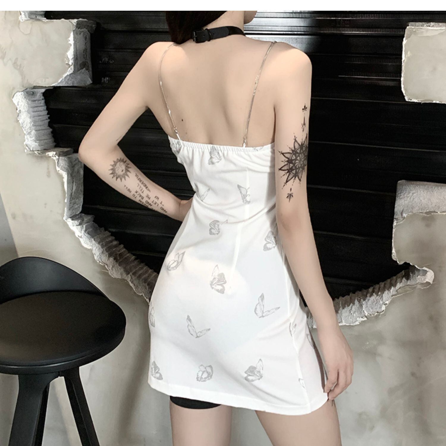 ✞✝✞ 白Butterflyデザイン プリントドレス ワンピースサマー ホワイト 夏物 ✞✝✞ ゴスロリ SM ミリ 甘ロリ クラロリ 和ロリ エレガント 黒ロリ 姫ロリ 華ロリ AA-AA72811435083