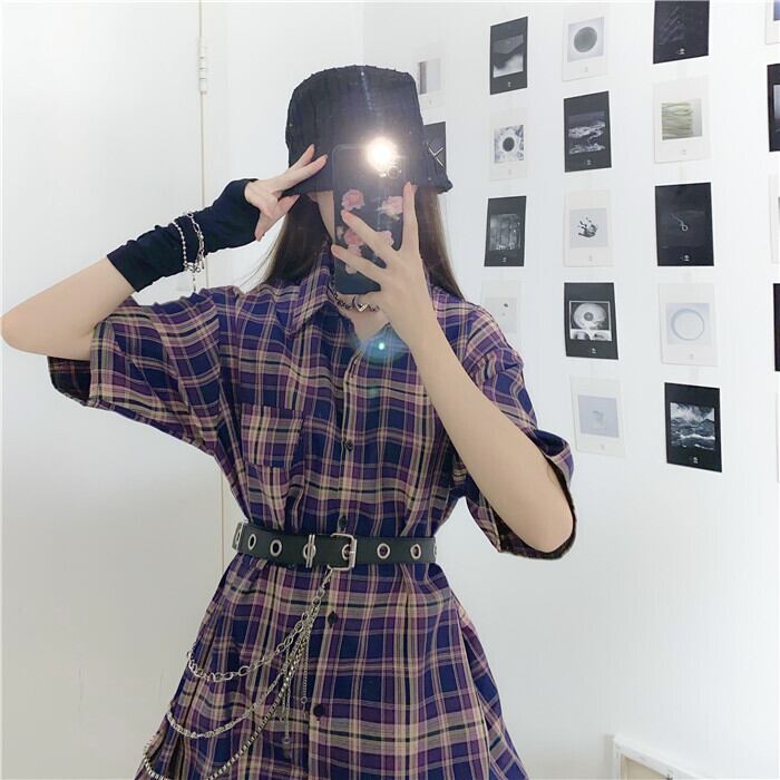 ✞ 半袖スリーブチェック柄シャツブラウス大人女子☆ ショート パープル ✞ゴスロリ SM ミリ 甘ロリ クラロリ 和ロリ エレガント 黒ロリ 姫ロリ 華ロリ BB-BB58983860370