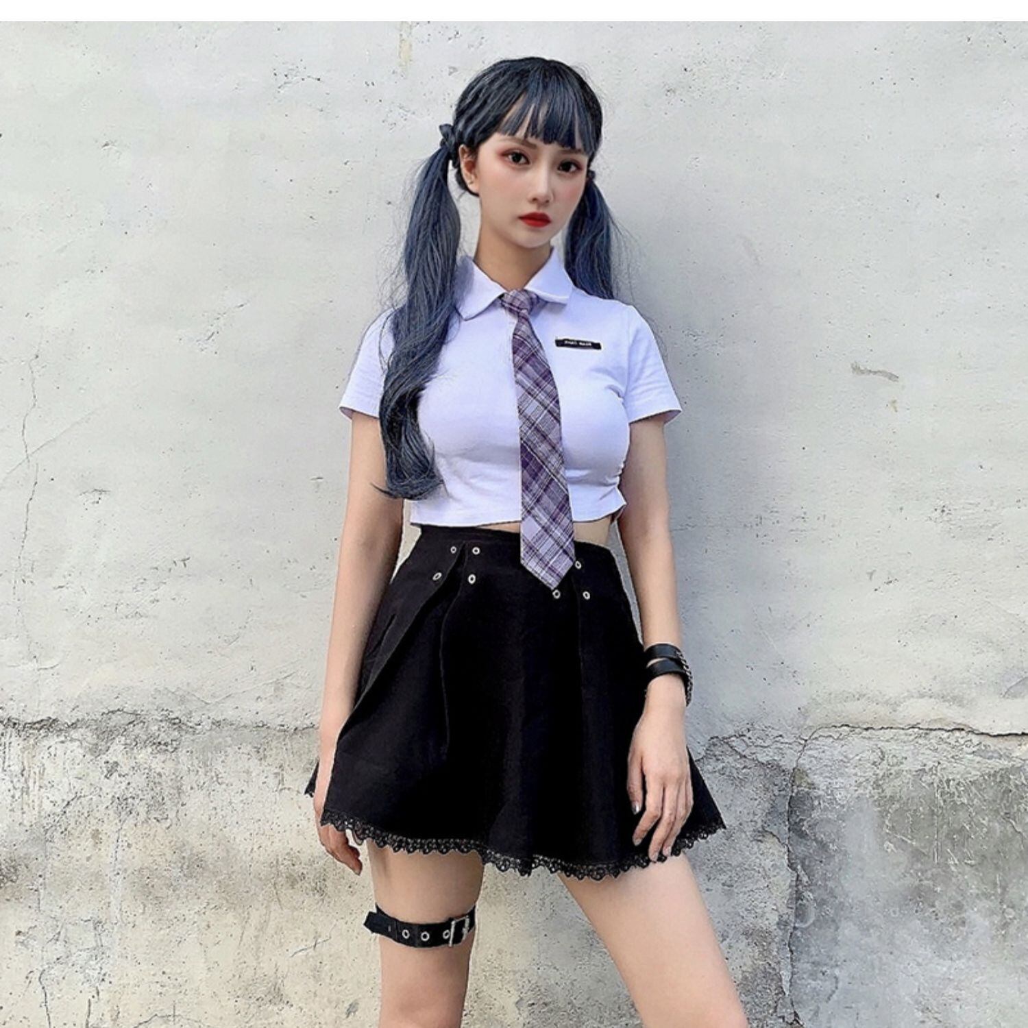 ✞✝✞ 白シャツブラウス♡プリーツTシャツ トップス ショート ホワイト コットン ✞✝✞ ゴスロリ SM ミリ 甘ロリ クラロリ 和ロリ エレガント 黒ロリ 姫ロリ 華ロリ AA-AA60744651677
