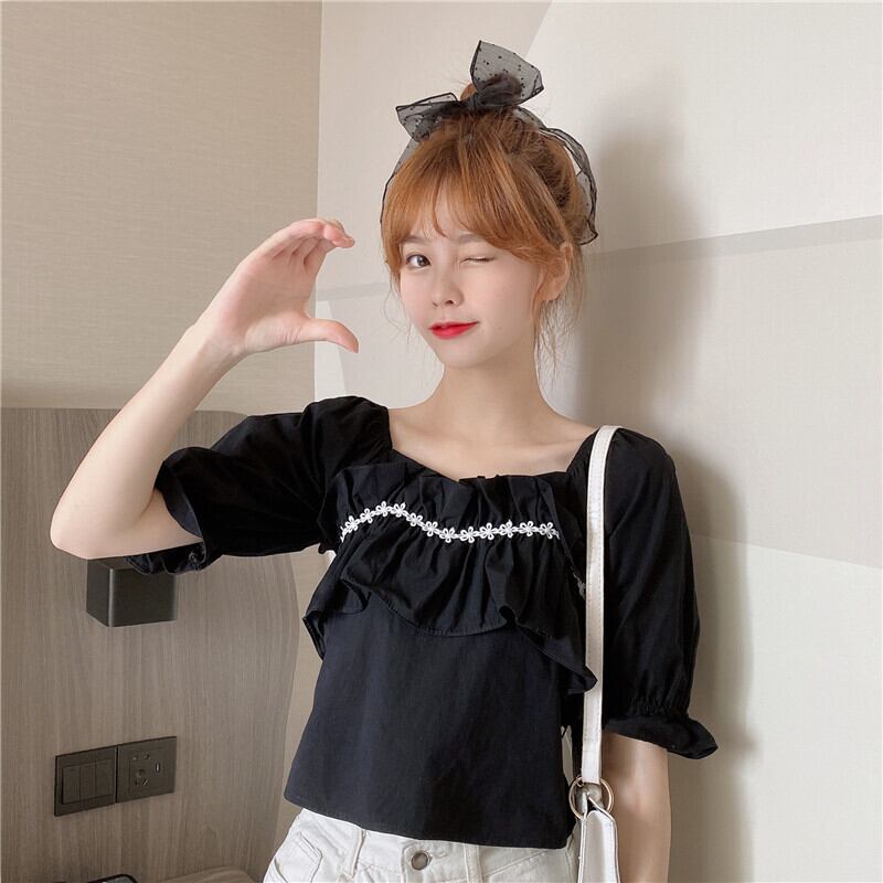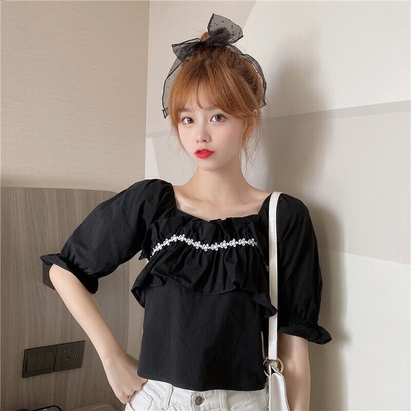 ✞ スリーブレースシャツブラウスショート♡トップス スウィート ガーリー スクウェア ステッチ ✞ゴスロリ SM ミリ 甘ロリ クラロリ 和ロリ エレガント 黒ロリ 姫ロリ 華ロリ BB-BB11480356861