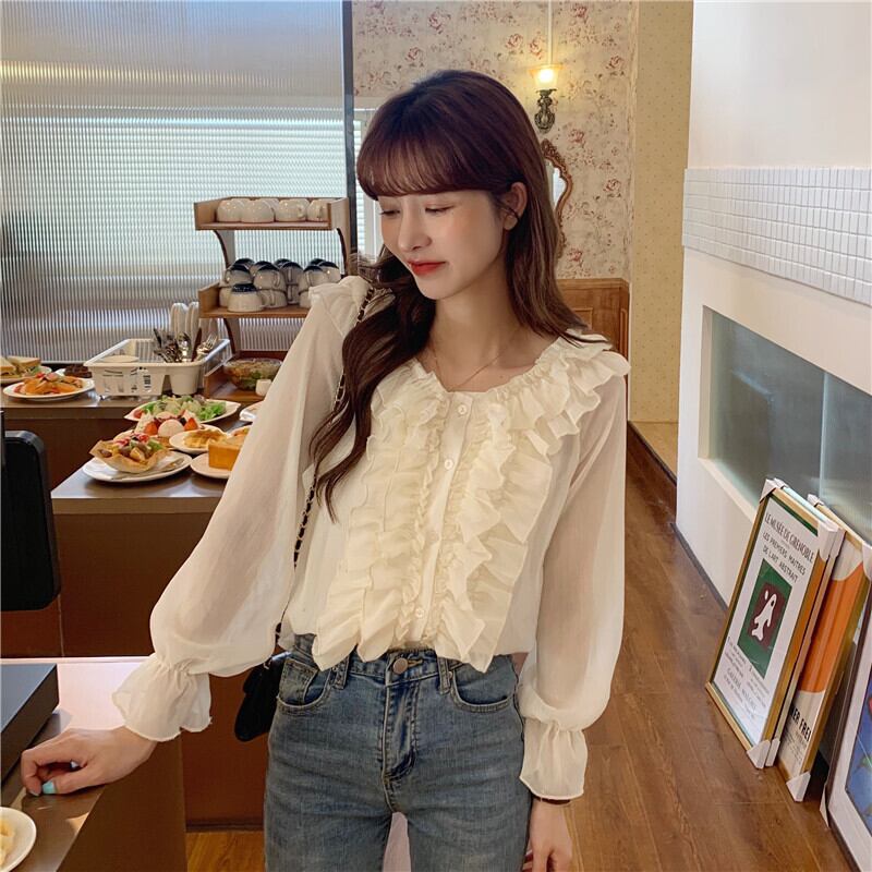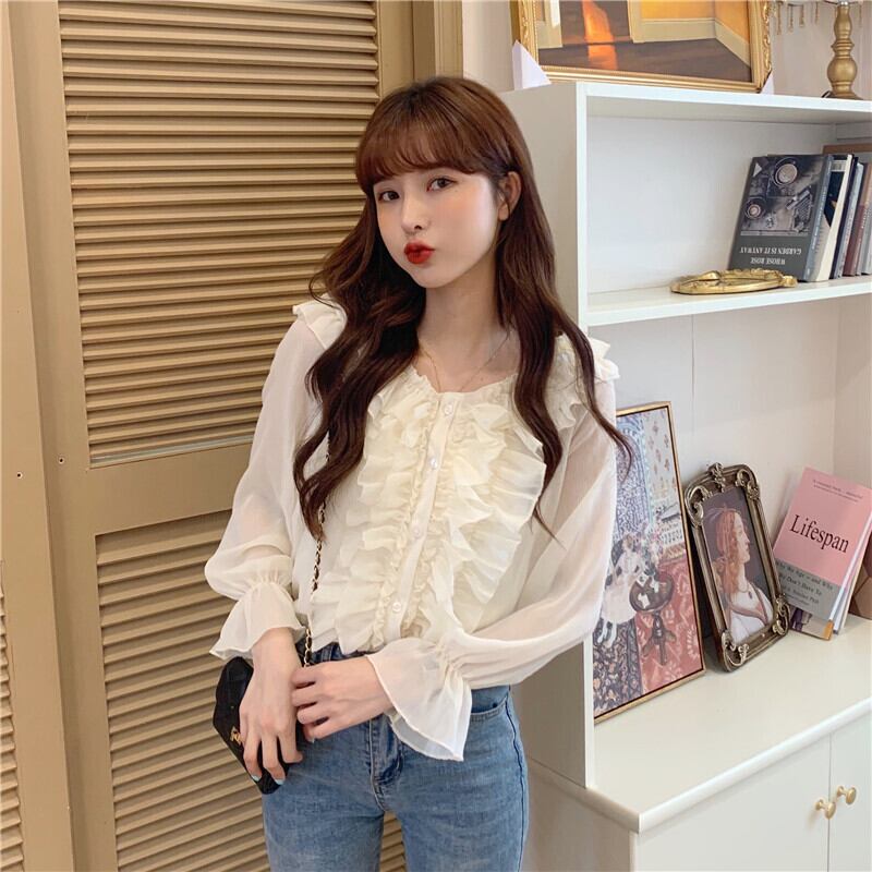 ✞ スウィートフリルシフォンシャツブラウスジャケット ロングスリーブ ステッチ ✞ゴスロリ SM ミリ 甘ロリ クラロリ 和ロリ エレガント 黒ロリ 姫ロリ 華ロリ BB-BB87410104584