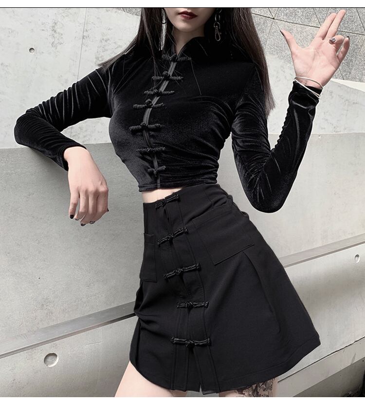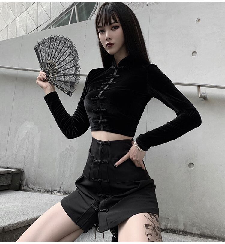 ✞✝✞ ブラックシャツブラウス大人女子☆ハイウェストスリムトップス ショート♡ ロング ✞✝✞ ゴスロリ SM ミリ 甘ロリ クラロリ 和ロリ エレガント 黒ロリ 姫ロリ 華ロリ AA-AA59651809396