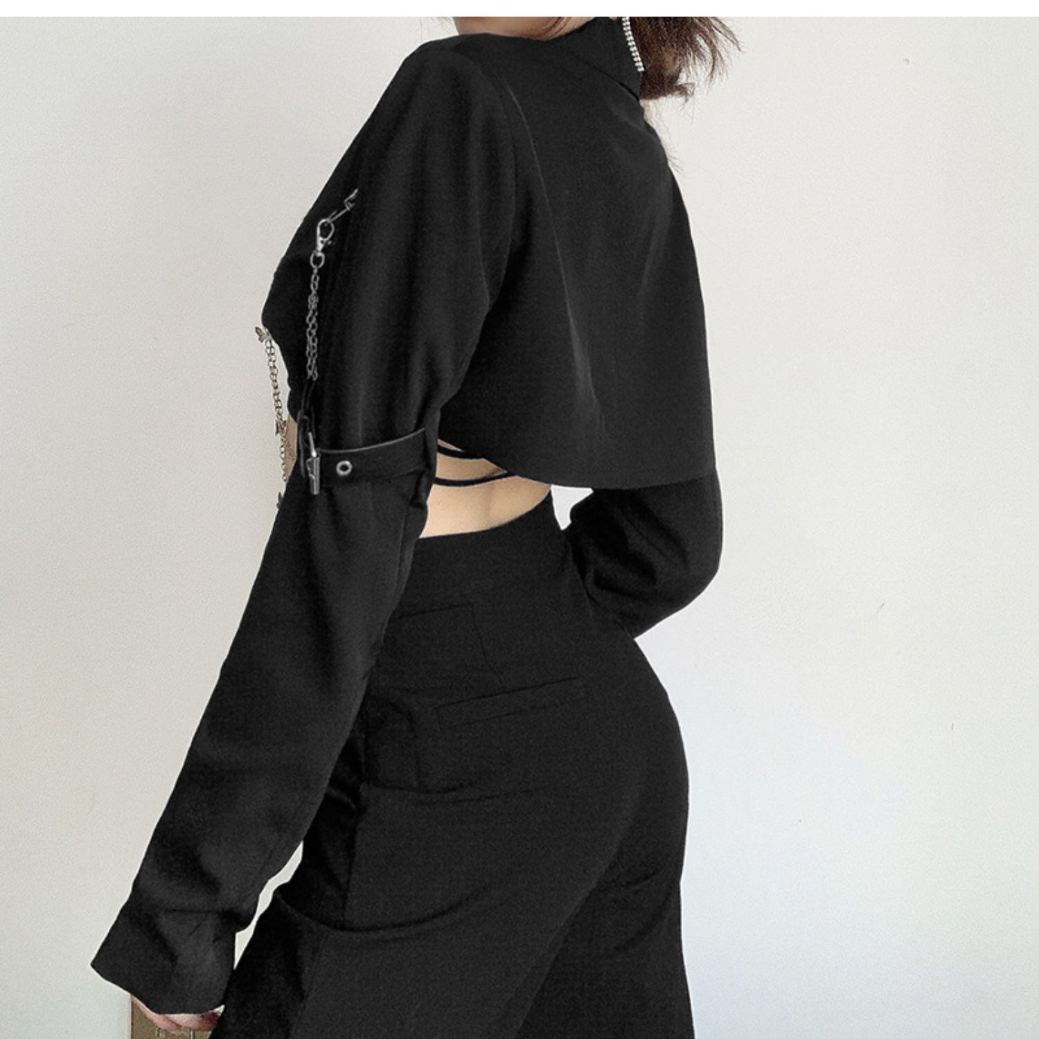 ✞✝✞ ブラックジャケット ショートスリムフィットチェーン トップス ストリート ✞✝✞ ゴスロリ SM ミリ 甘ロリ クラロリ 和ロリ エレガント 黒ロリ 姫ロリ 華ロリ AA-AA98102565838