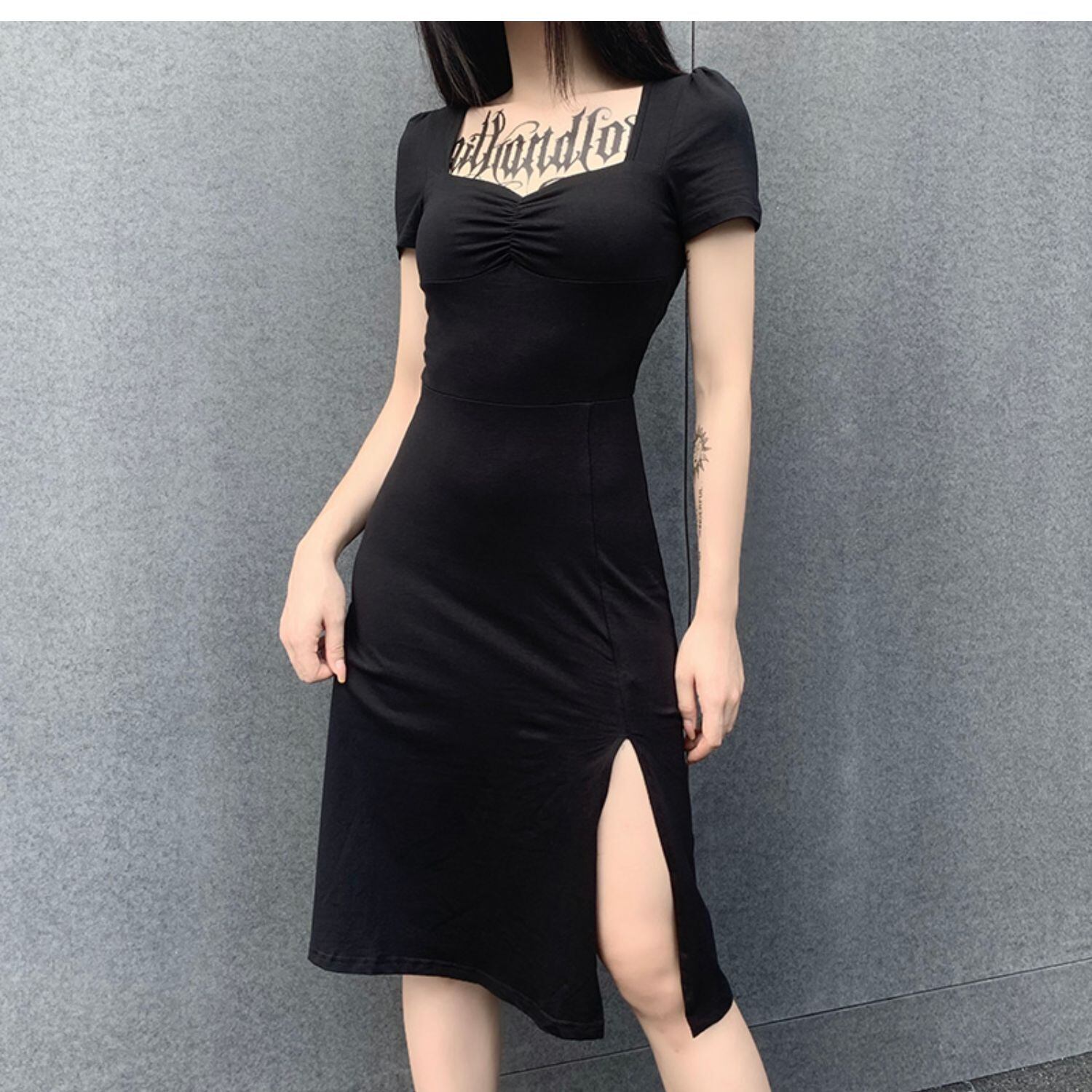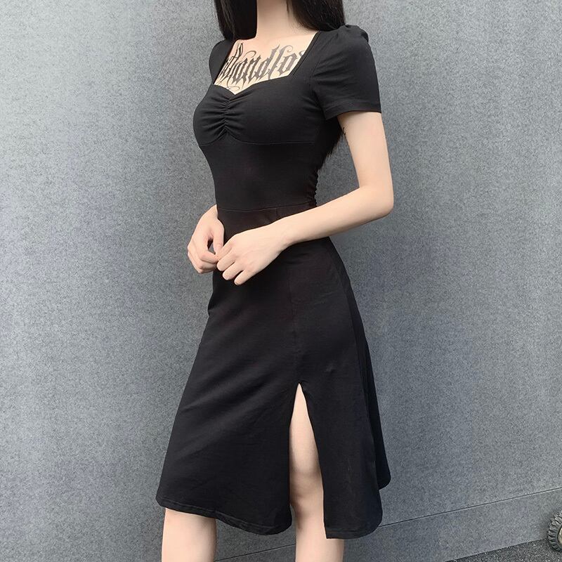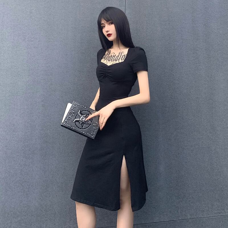 ✞✝✞ ブラックスリーブロング♡★サイドスリットスカート 大人女子☆ スクウェア ✞✝✞ ゴスロリ SM ミリ 甘ロリ クラロリ 和ロリ エレガント 黒ロリ 姫ロリ 華ロリ AA-AA36155553640